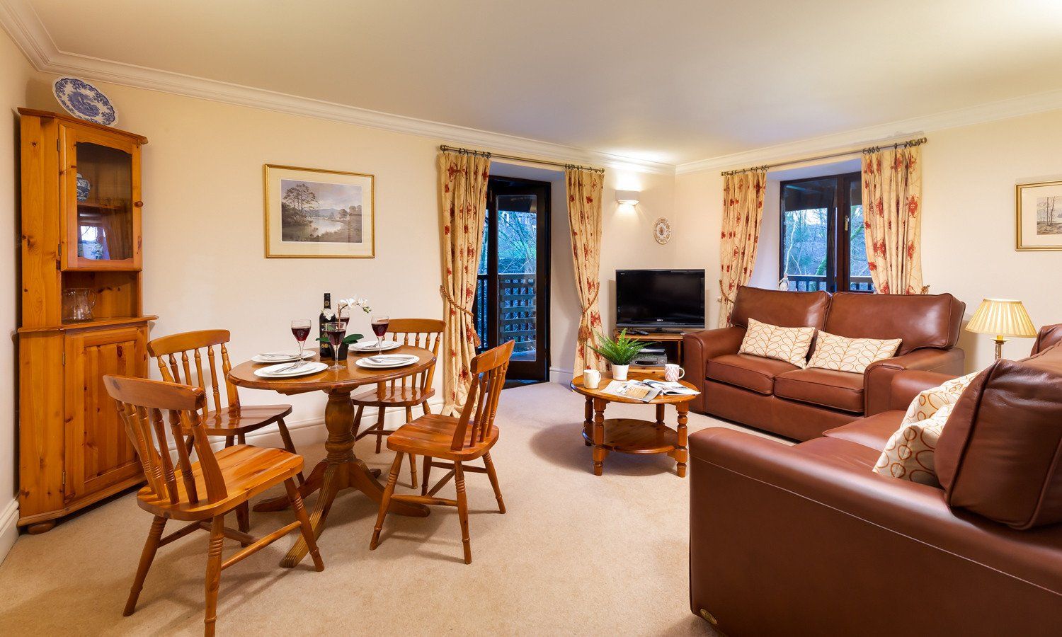 Accomodation Details Over two floors. Two bedrooms: 1 x lower ground floor king-size double with en-suite bath, shower over, basin and WC, 1 x ground floor twin. Shower room with separate shower, basin and WC. Sitting room with balcony. Kitchen