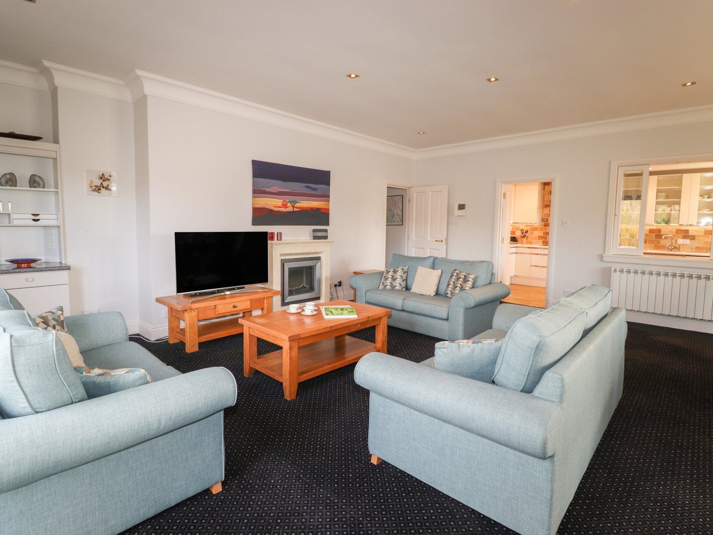 Accomodation Details Top floor apartment. Three bedrooms: 1 x king-size with ensuite bathroom with walk-in shower and heated towel rail , 1 x king-size, 1 x twin. Bathroom with bath, walk-in shower, basin, heated towel rail and WC. Kitchen. Sitting/dining room with electric fire