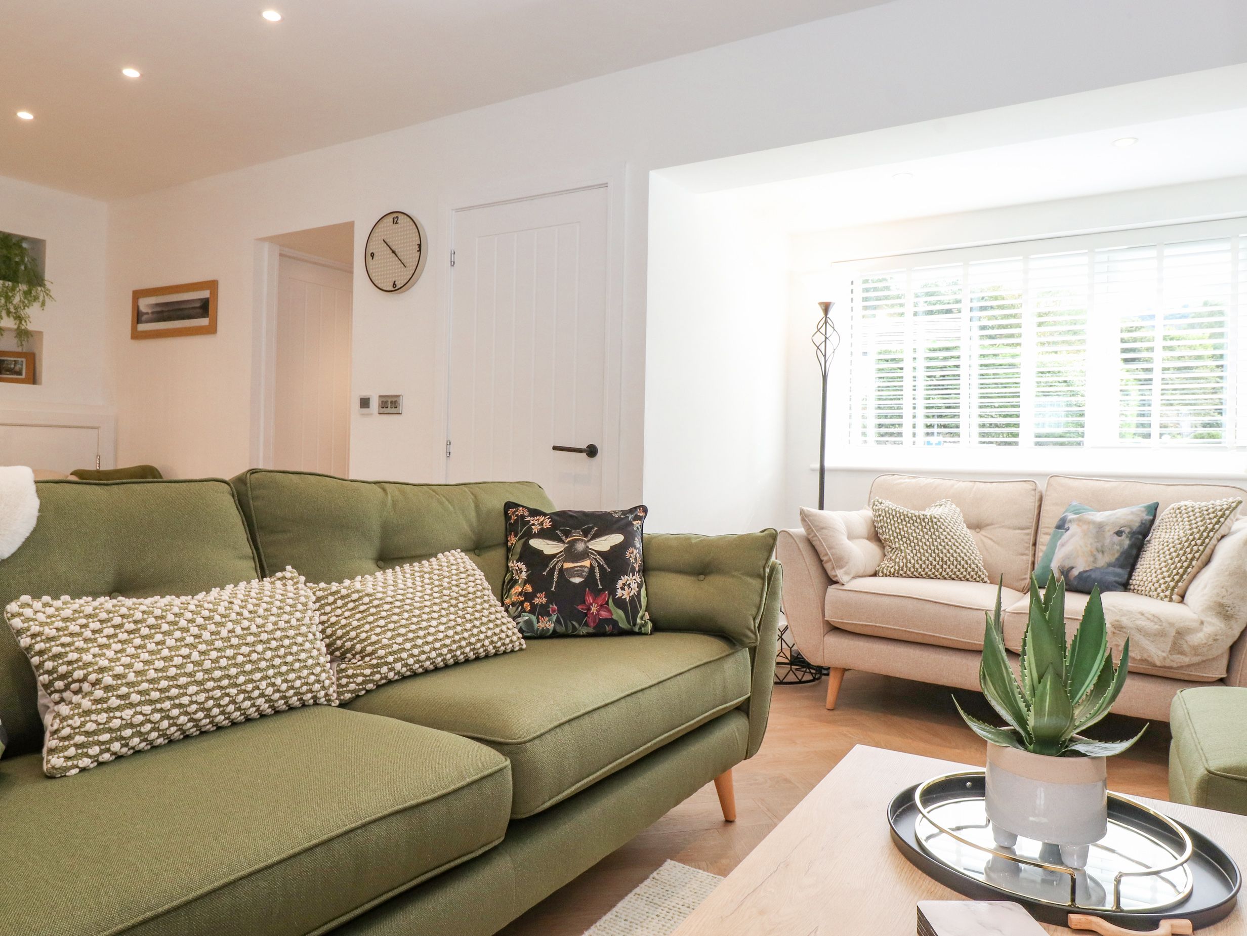 Accomodation Details Set over three floors. Four bedrooms: 1 x second-floor super-king-size with en-suite walk-in shower, basin, heated towel rail and WC, 1 x king-size with en-suite walk-in shower, basin, heated towel rail and WC, 1 x king-size, 1 x bunk. Cloakroom. Bathroom with bath, shower over, basin, heated towel rail and WC. Open-plan living space with kitchen, dining area and sitting area with electric fire