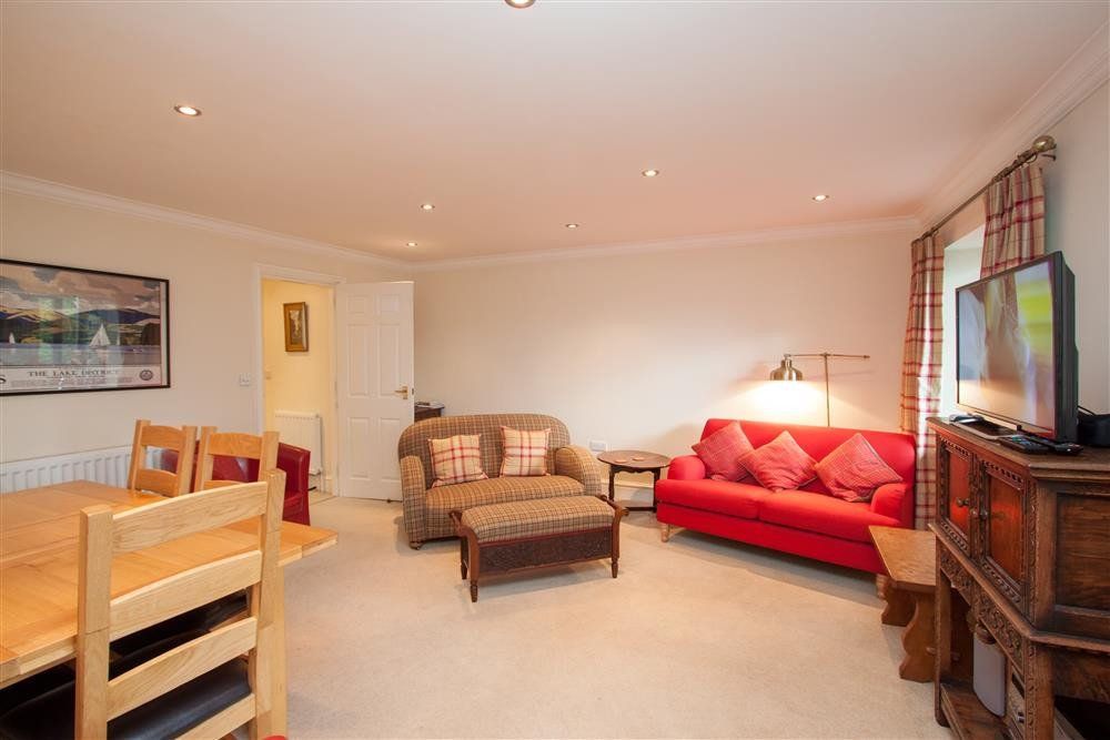 Gas central heating. Electric oven and hob, microwave, fridge/freezer, dishwasher, washing machine, tumble dryer, TV, DVD, CD player, and WiFi. Fuel and power inc. in rent. Bed linen and towels inc. in rent. Undercover parking for one car (height restriction 1.95m). Enclosed balcony with seating. Sorry, no pets and no smoking. Shop 0.4 miles, pub 0.3 miles