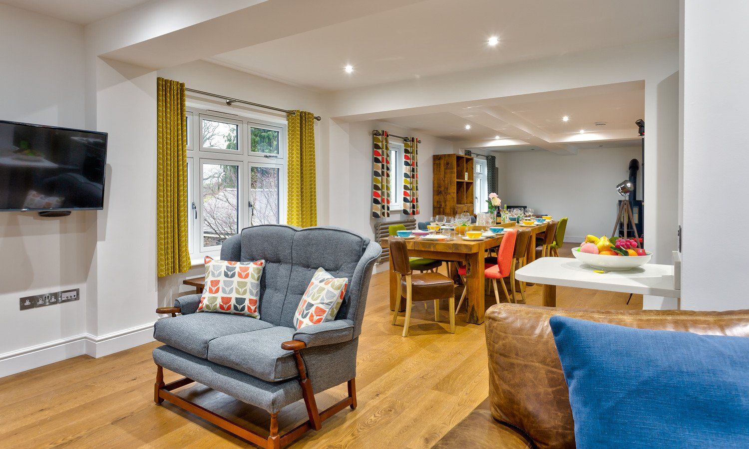 Amenities Gas central heating, gas log flame effect stove, all bathrooms have underfloor heating. Range cooker, gas hob, gas and electric oven, microwave, fridge/freezer, washing machine, tumble dryer, dishwasher, TV, bean to cup coffee machine, cafetiere, 1xhighchair and 1x travel cot. Wi-Fi. Parking for 6 cars. Sloping lawned garden. Two patios with furniture. Garage for secure bike/canoe storage. Two medium size dogs welcome. Sorry, no smoking. Shop and pub are a few minutes stroll.