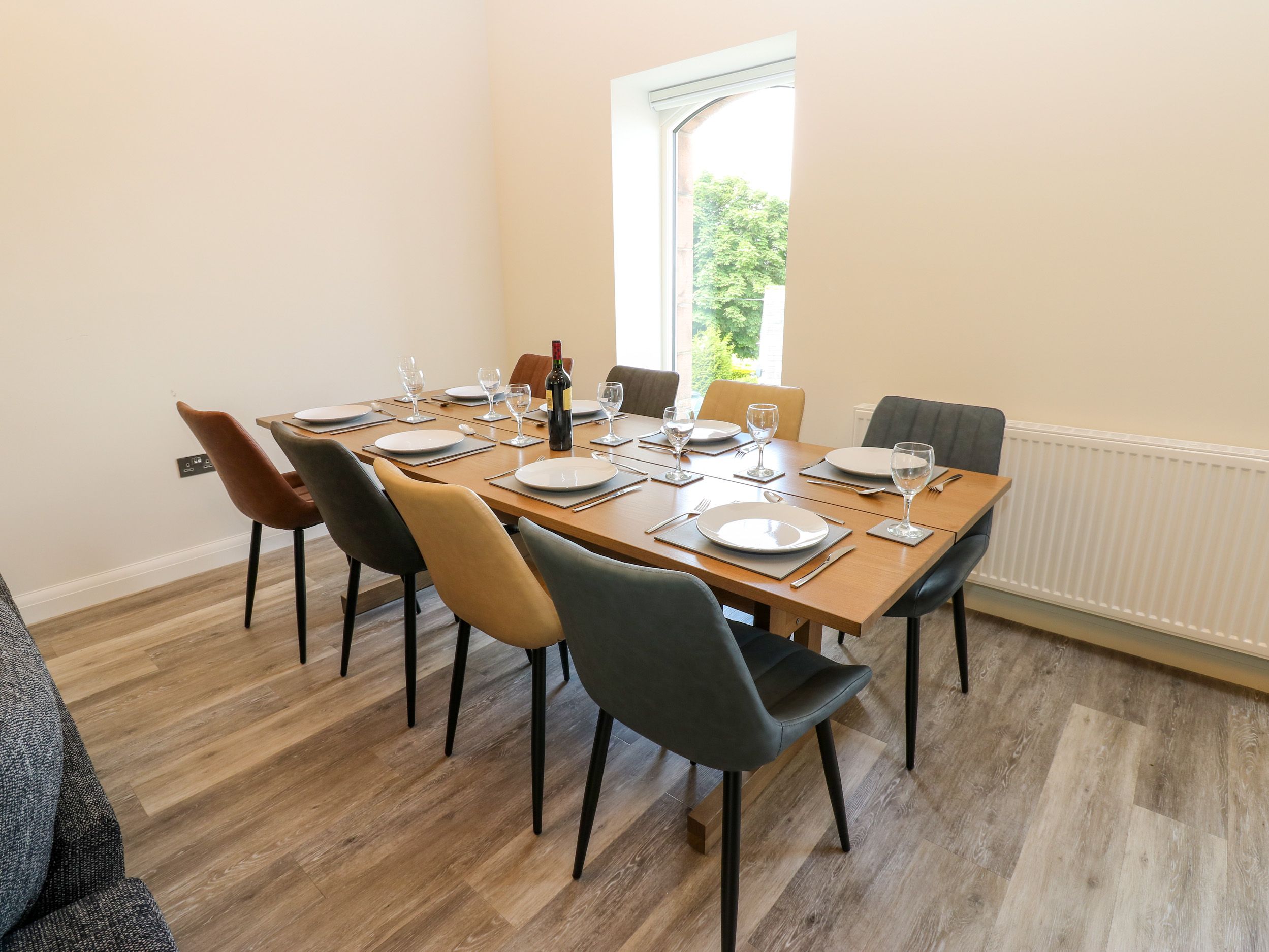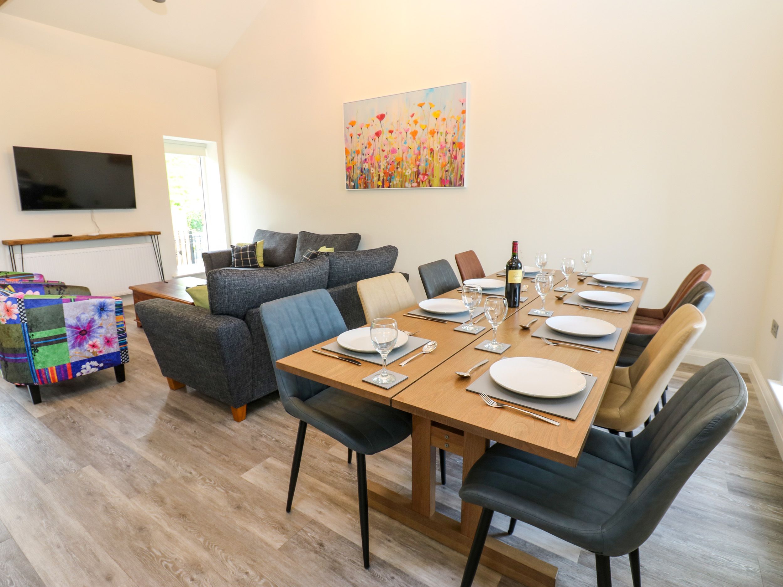 Holiday home The Hayloft, a reverse-level abode consists of a first-floor open-plan living space including a kitchen equipped with an electric oven and hob, microwave, fridge/freezer and dishwasher, dining area with seating for four guests, a sitting area with Smart TV, external utility room with washing machine and tumble dryer. The bedrooms consist of two ground-floor super-king-size with en-suite shower rooms and a ground-floor super-king-size with en-suite bathroom. Outside, there is a private patio with furniture, and off-road parking is available. Within 4.7 miles you will find a shop and within 2 miles, a pub. One well-behaved pet welcome. Sorry, no smoking. WiFi, fuel, power, bed linen, and towels are all included in the price. Escape to the beautiful countryside of Cumbria with a stay at The Hayloft. The owners live across the property. There are steps up to the entrance. Fourth bedroom super-king-size bedroom located on the first floor with en-suite bathroom