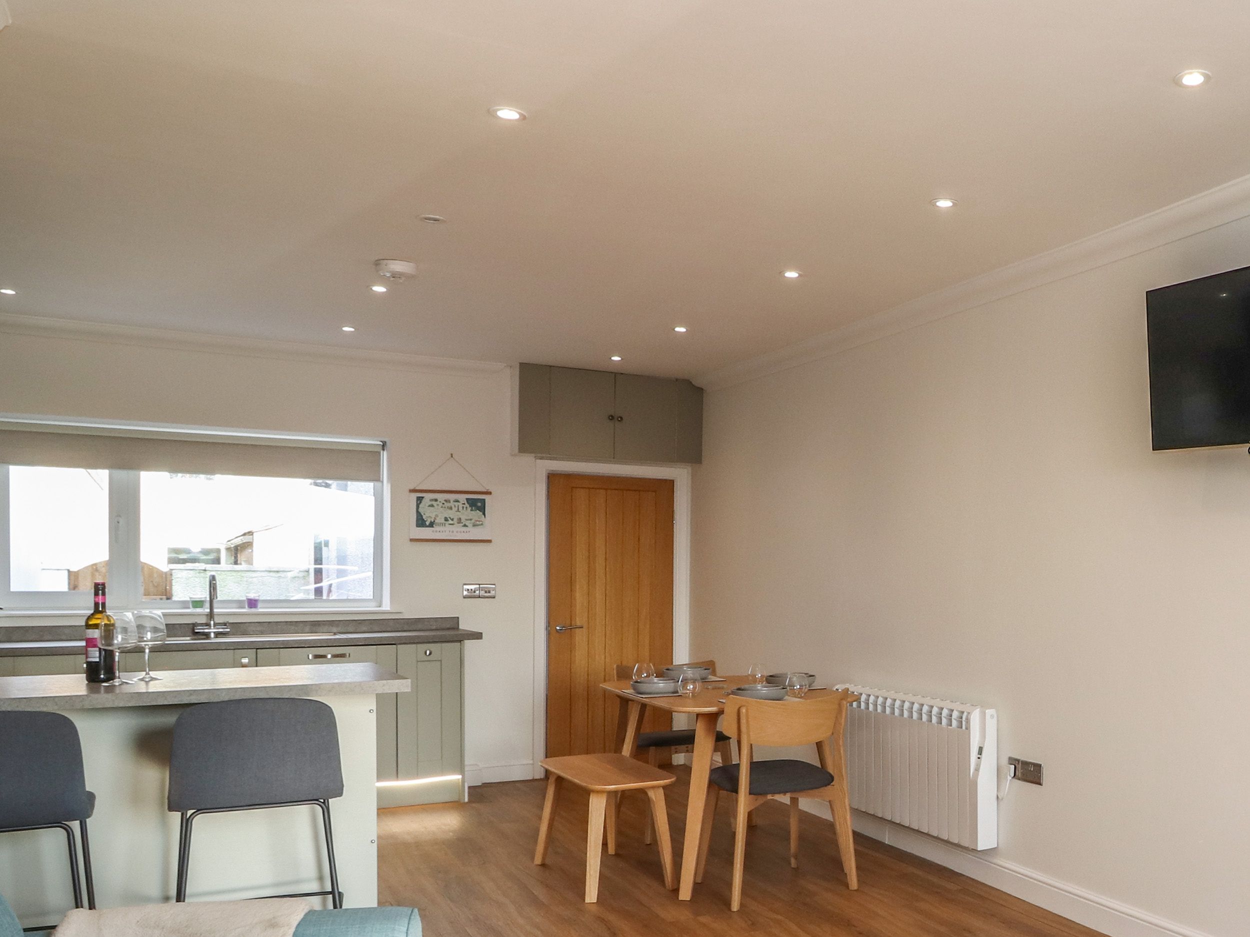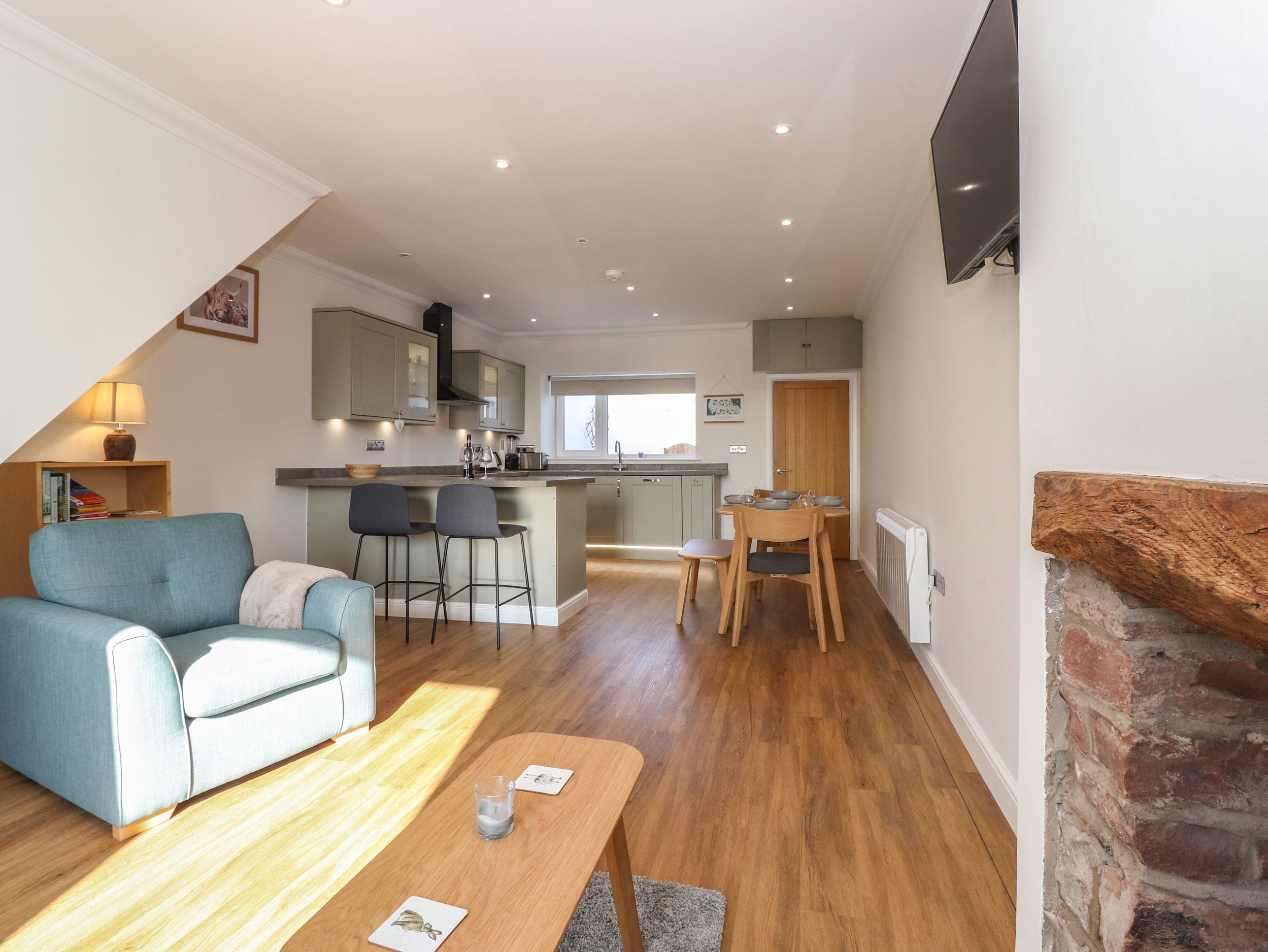 Amenities Electric central heating. Electric oven and hob, microwave, fridge, freezer, washing machine, dishwasher. Smart TV, WiFi and a selection of books. Fuel and power inc. in rent. Bed linen and towels inc. in rent. Roadside parking. Enclosed rear garden with patio and furniture. One pet welcome. Sorry no smoking. Shop 4.0 miles, pub 3.3 miles. Note: The staircase at the property has a banister
