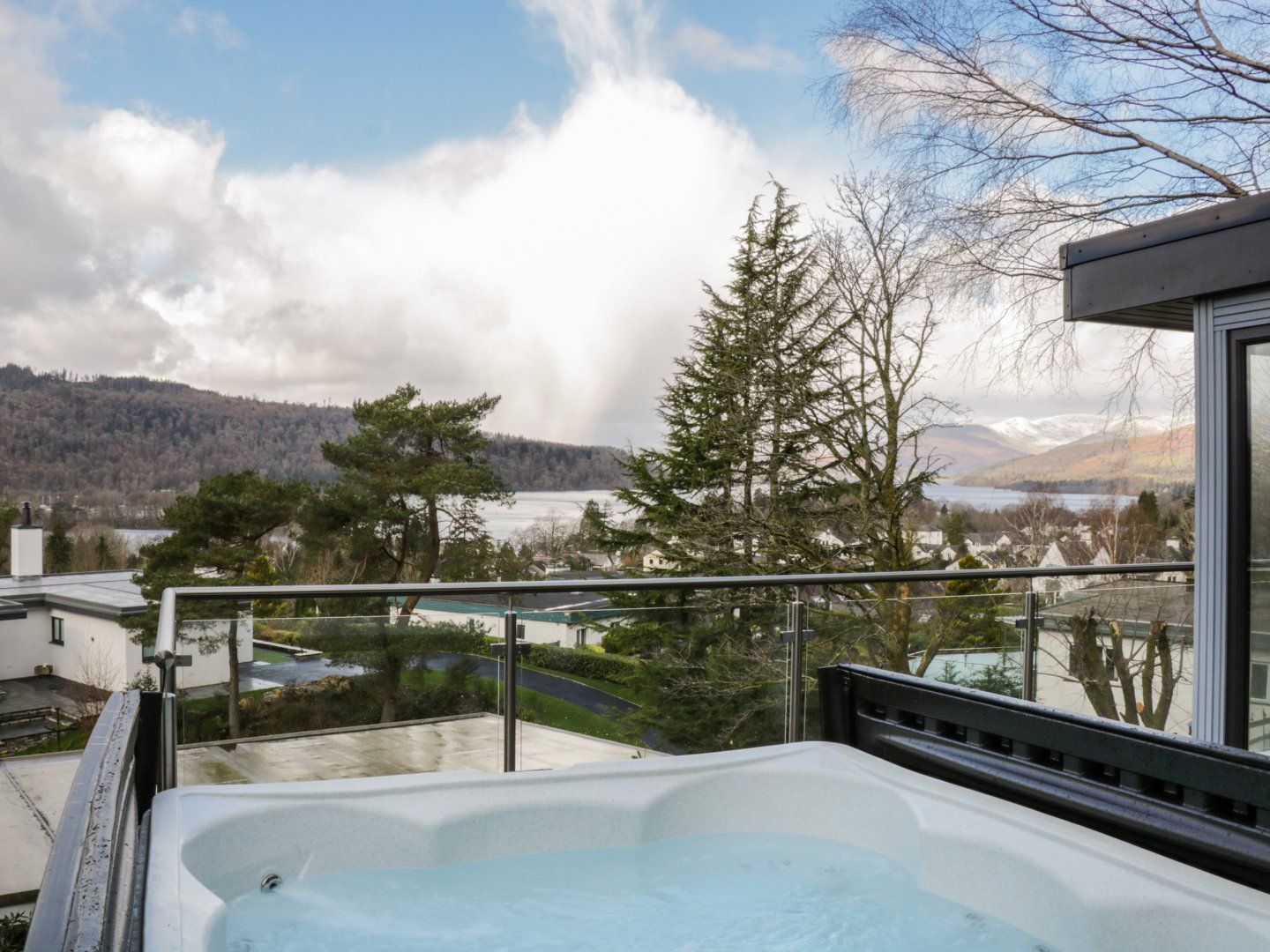 Holiday home The open-plan living area for this property is set on the first-floor and comprises a kitchen equipped with an electric oven, induction hob, kettle, toaster, microwave, American-style fridge/freezer, fridge and dishwasher, a dining area with seating for eight and a sitting area with a Smart TV and an electric flame-effect fire. There is also an external utility with a washing machine and bike storage. The bedrooms consist of a zip/link ground-floor super-king-size with Smart TV and en-suite bathroom, a zip/link ground-floor super-king-size with Smart TV and two king-size rooms with Smart TVs and en-suite shower rooms. There is also a ground-floor shower room. Outside, there is off-road parking for four cars, a first-floor balcony with furniture and barbecue and a multi-level rear garden with lawn, patio, a garden room with furniture and a patio with a hot tub. This property accepts one well-behaved pet, however, this property doesn't permit smoking. For your local conveniences, there is a shop and pub within 0.3 miles. And a touch of luxury to your next escape to the lakes with a stay at Brantlea. Note: There are two steps leading down into one of the king-size bedrooms and two steps leading into the kitchen that may not be suitable for guests with limited mobility, please take care. Note: The rear garden is set on a steep, sloped hillside with steps leading to the garden room, please take care. Note: The property is accessed via a number of stone steps that may not be suitable for guests with limited mobility. Note: Check-in from 3:30pm, check-out by 10am. Note: Under-floor heating is in all bathrooms.