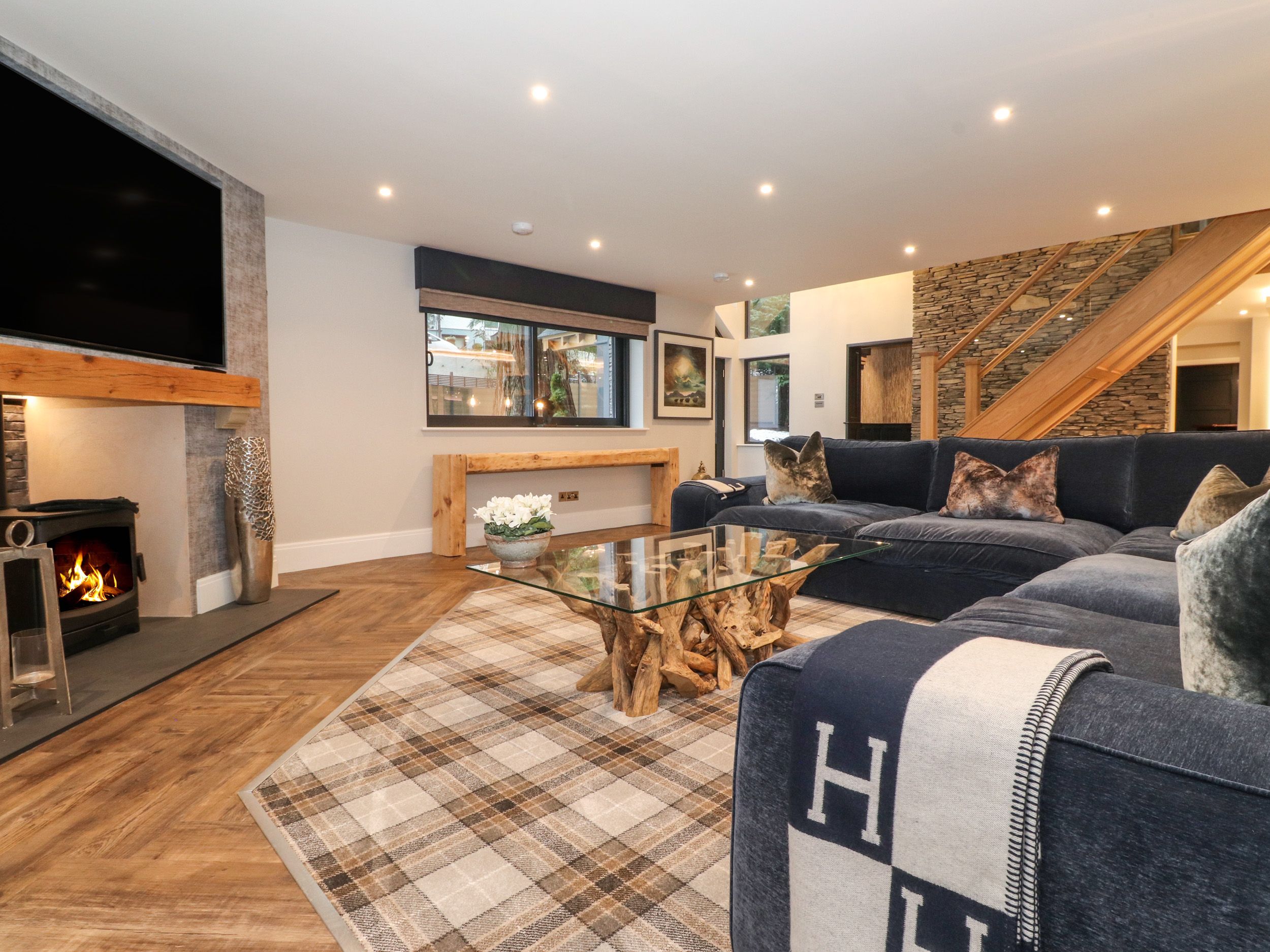 Amenities Central heating. 2 x electric ovens, 5-ring electric hob, microwave, American fridge/freezer, Nespresso coffee machine, uses Vertuo coffee pods (initial supply), washing machine, tumble dryer and dishwasher. 6 x Smart TVs, WiFi, pool table. Fuel, power and starter for woodburning stove inc. in rent. Bed linen and towels inc. in rent. Off-road parking for 4 cars. EV charge point. Large patio with furniture and barbecue and wrap-around balcony. Two well-behaved dogs welcome. Sorry, no smoking. Shop 0.5 miles, pub 0.4 miles and Lake Windermere 0.4 miles. Note: There may be limited head height in the twin bedroom. Note: Check-in from 4pm, check-out by 10am. Note: EV charging available by prior arrangement via an app.