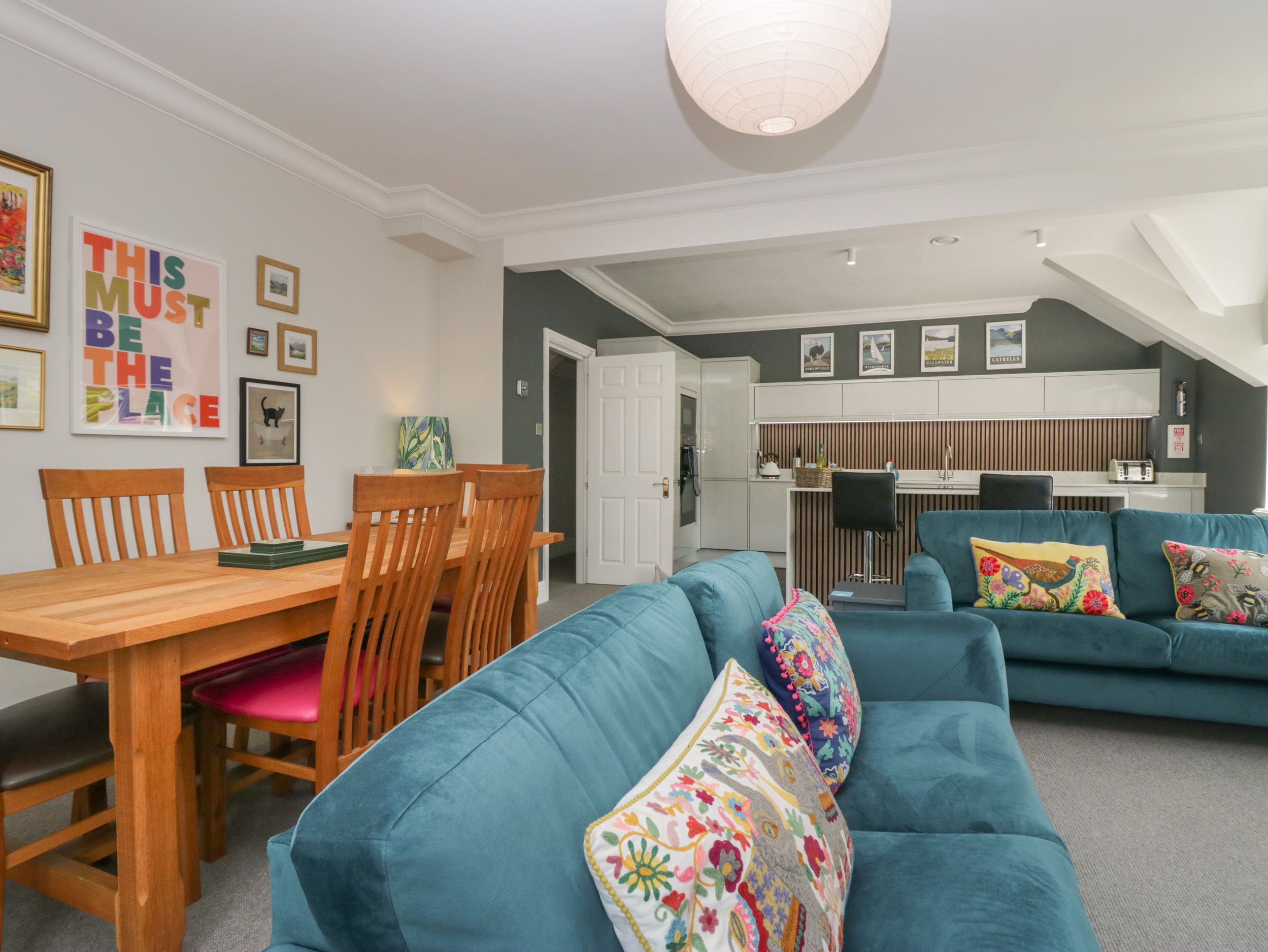 Accomodation Details Second-floor apartment. Three bedrooms: 1 x king-size, 1 x double with en-suite bath, shower over, basin, heated towel rail and WC, 1 x twin. Shower room with walk-in shower, basin, heated towel rail and WC. Open-plan living space with kitchen, dining area and sitting area