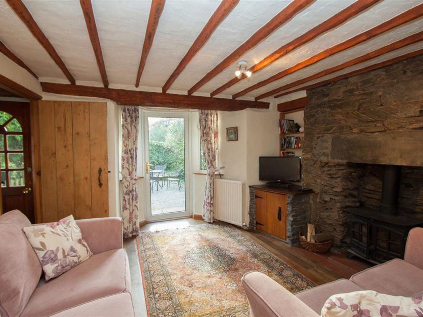 Amenities Gas central heating with woodburning stove. Electric oven and gas hob, microwave, fridge, washer/dryer, dishwasher, TV with Freeview and DVD player, WiFi. Fuel, power and starter pack for woodburning stove inc. in rent. Bed linen and towels inc. in rent. Parking permit provided for use on the access road leading to the cottage. Enclosed patio with furniture. One well-behaved dog welcome. Sorry, no smoking. Shop and pub 0.2 miles. Note: There is no room for a cot or highchair at this property