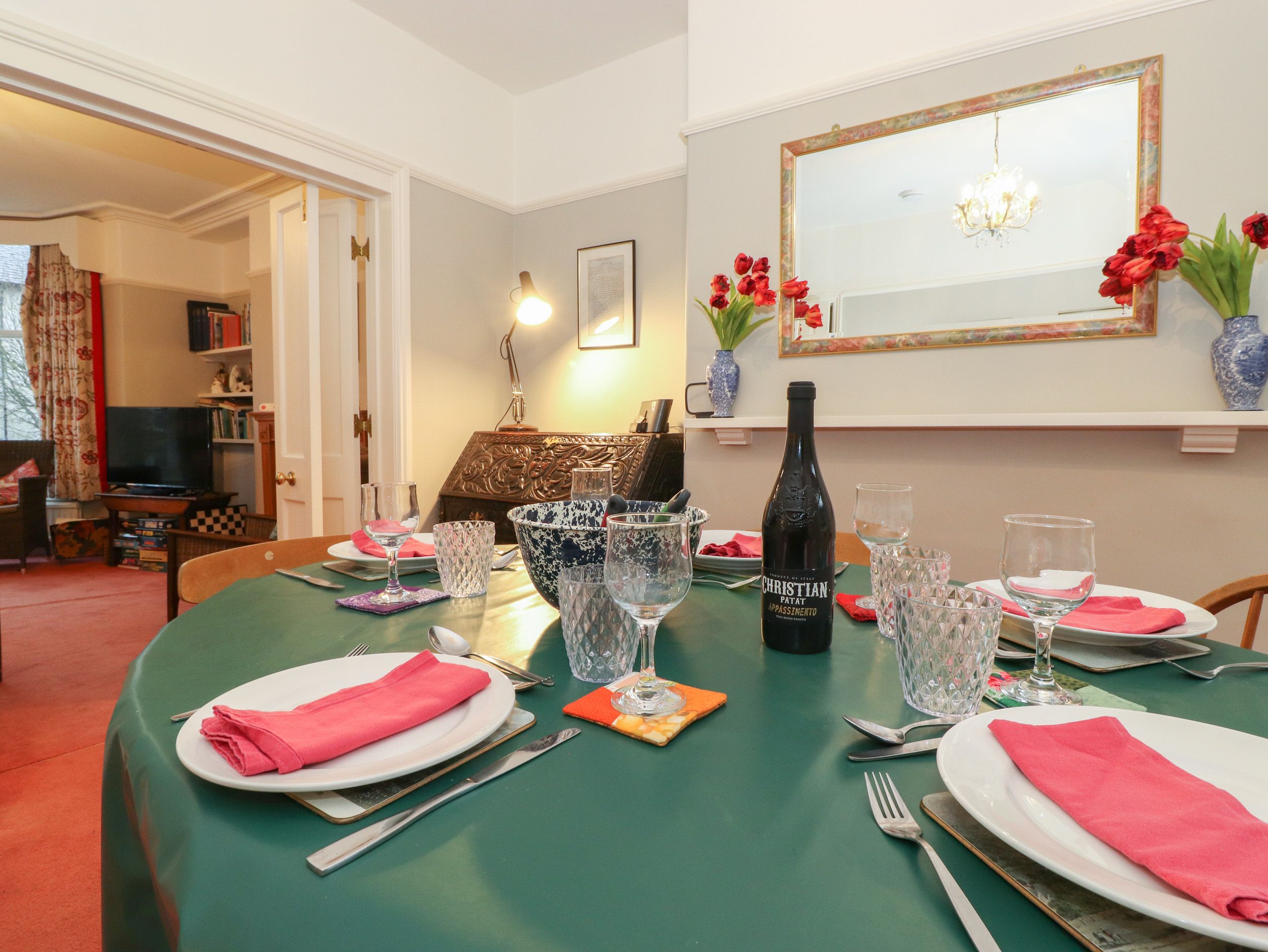 Over three floors. Three bedrooms: 1 x king-size, 1 x double with TV, 1 x second-floor single, a fabulous hideaway for a child over 12 or a quiet workspace with table, chair, fast WiFi and glimpses of the north lake fells. Bathroom with bath, shower over, basin and WC. Kitchen with toaster, teapot, cafetiere. Basement utility. Living/dining room with gas fire