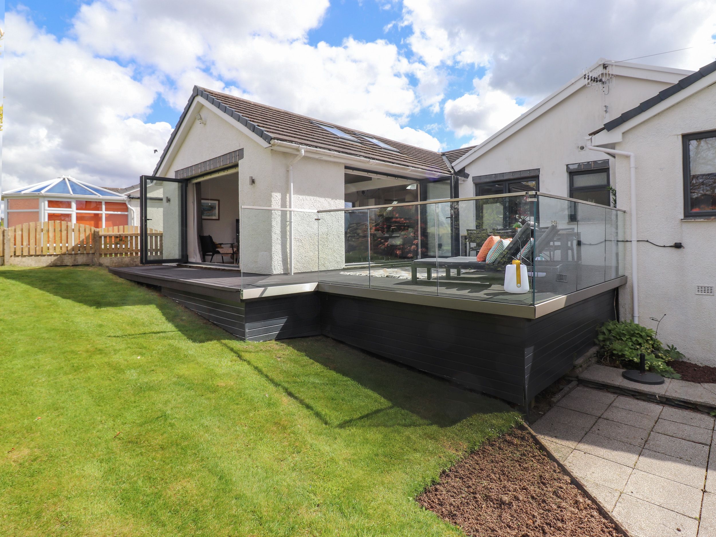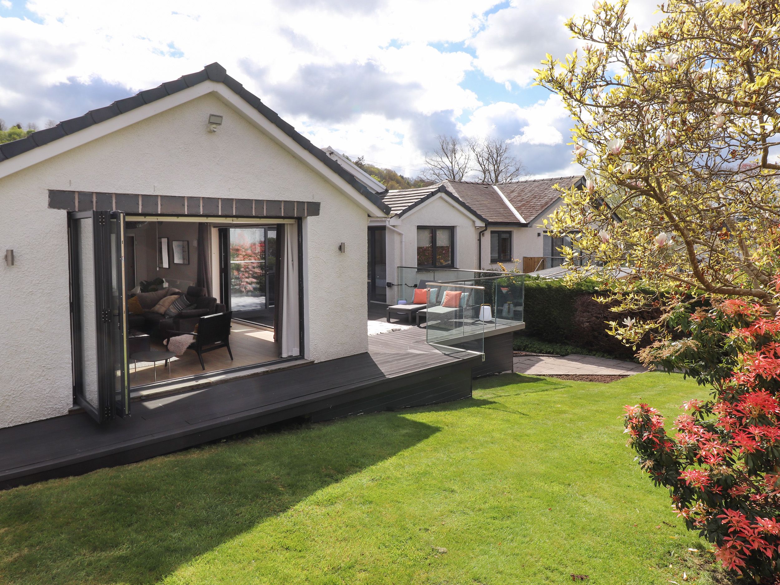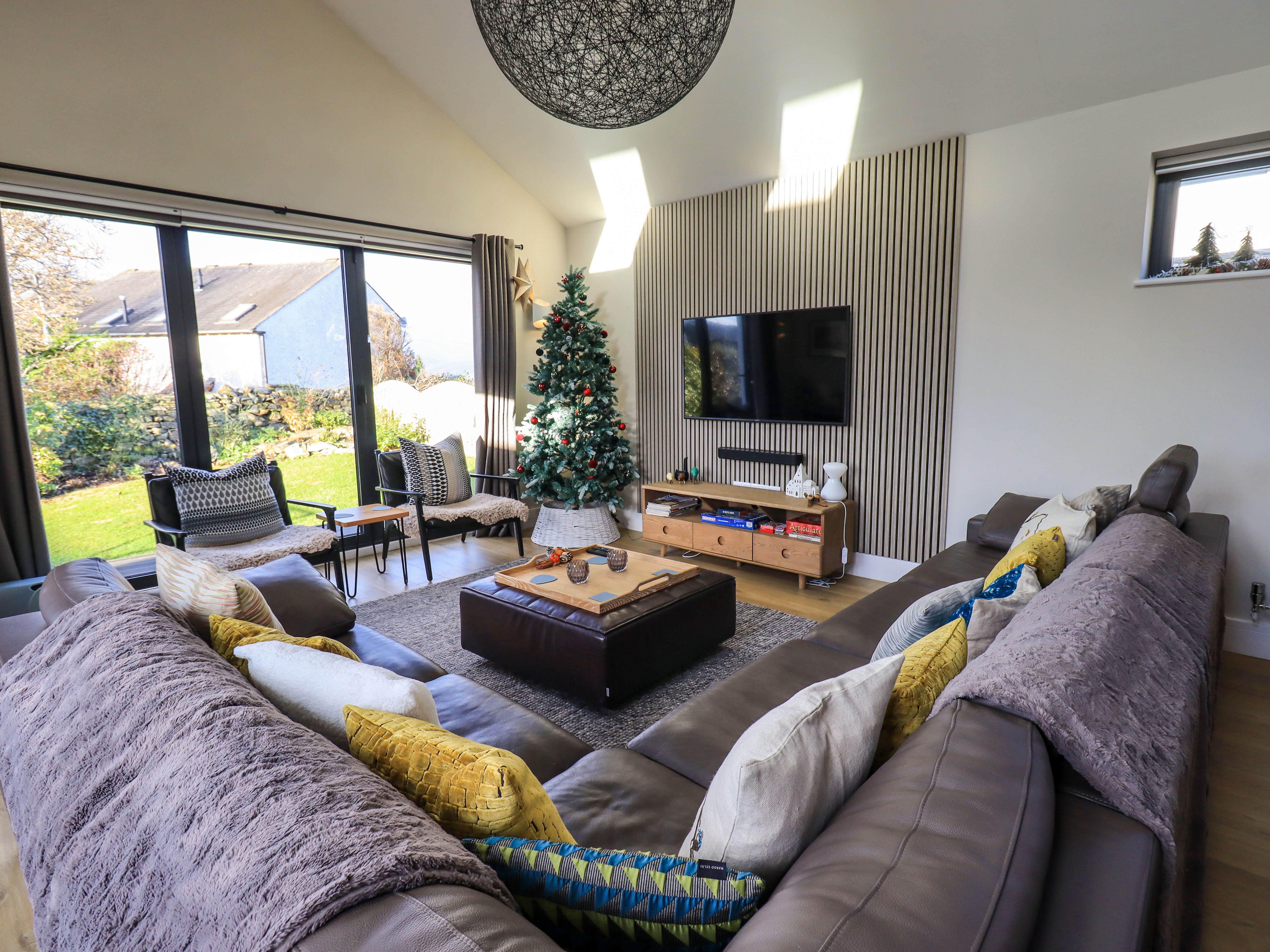 Holiday home Yonder Lea has four bedrooms; one king-size with en-suite walk-in shower, basin, heated towel rail and WC, one king-size with Smart TV, one king-size and one double. There’s a bathroom with a bath and hand-held shower, walk-in shower, basin, heated towel rail and WC, and a cloakroom with basin and WC. There’s an open-plan living space with a kitchen equipped with an electric double oven and halogen hob, microwave, fridge, freezer, washing machine, dishwasher, kettle and toaster, a dining area and sitting area. Outside there’s private driveway parking for three cars and an enclosed rear garden with lawn, decking and furniture. Sorry, no pets and no smoking. Nearest shop and pub in 0.2 miles, lake in 0.6 miles. Come to Yonder Lea for a lovely Cumbria getaway. Note: Two steps up to the property