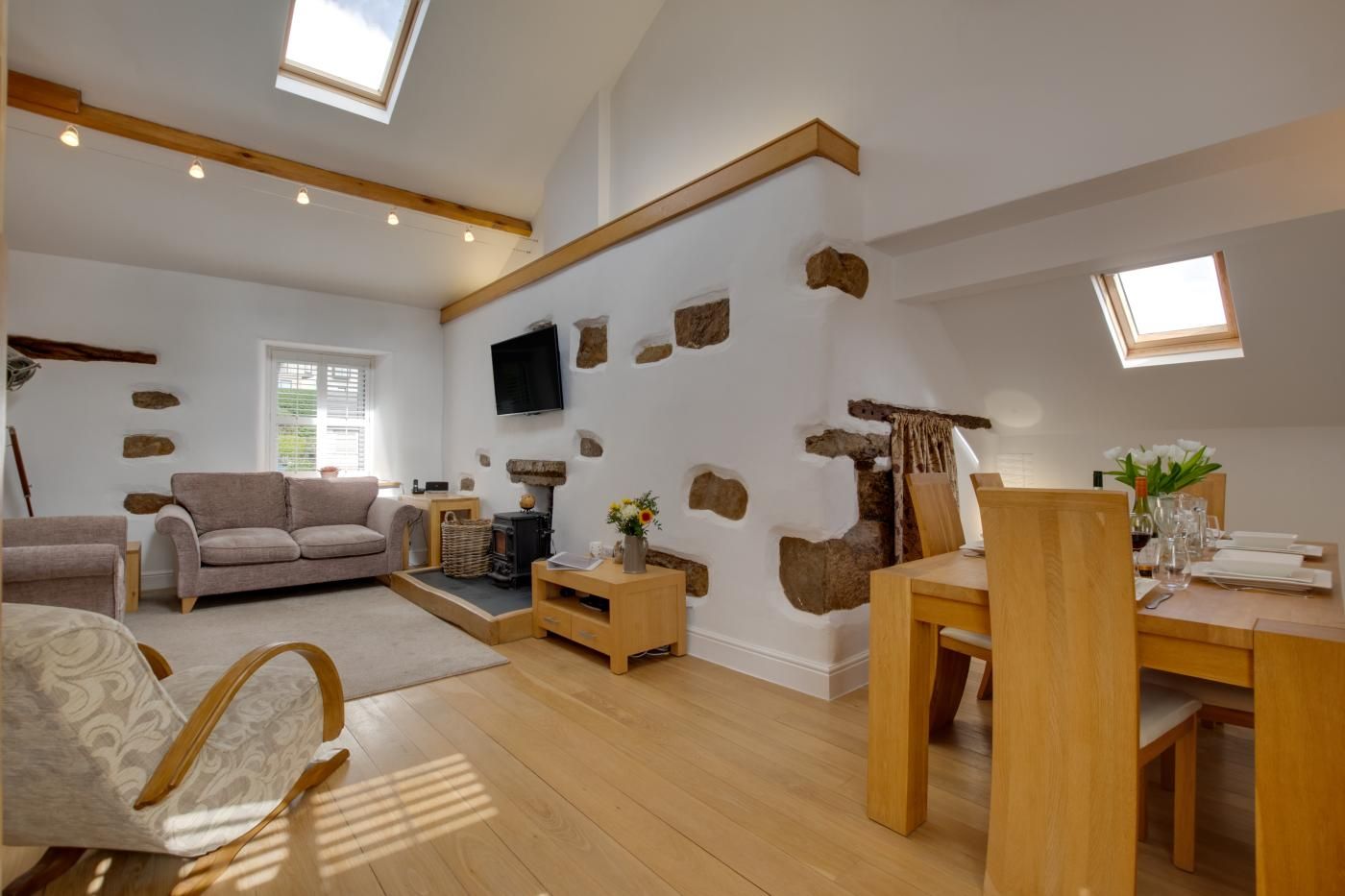 This delightful cottage which has an upside-down layout with living space on the first floor is located next to the small river Eea in the centre of the village Cark in Cartmel. It is presented to an excellent standard throughout whilst still retaining original features such as beams, old fireplaces and exposed stone thus combines beautifully old and modern luxury.