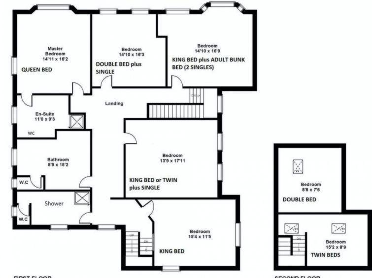 11-room house 250 m2. Object suitable for 21 adults. Living room with open-hearth fireplace and TV. 1 room with 1 french bed. 1 room with 1 bed. 1 room with 1 x 2 bunk beds, 1 french bed. 1 room with 1 bed and 1 double bed. 1 room with 1 french bed. 1 room with 1 bed and 1 french bed.