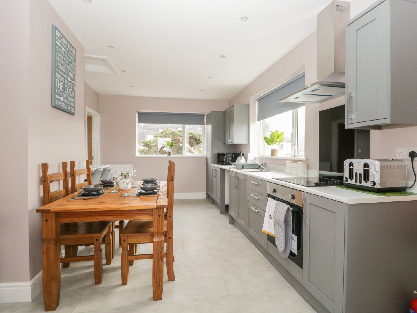 Accomodation Details All-ground-floor. Three bedrooms: 1 x double with TV, 1 x double, 1 x bunk. Shower room with walk-in shower, basin, heated towel rail and WC. Kitchen/diner. Sitting room with electric fire