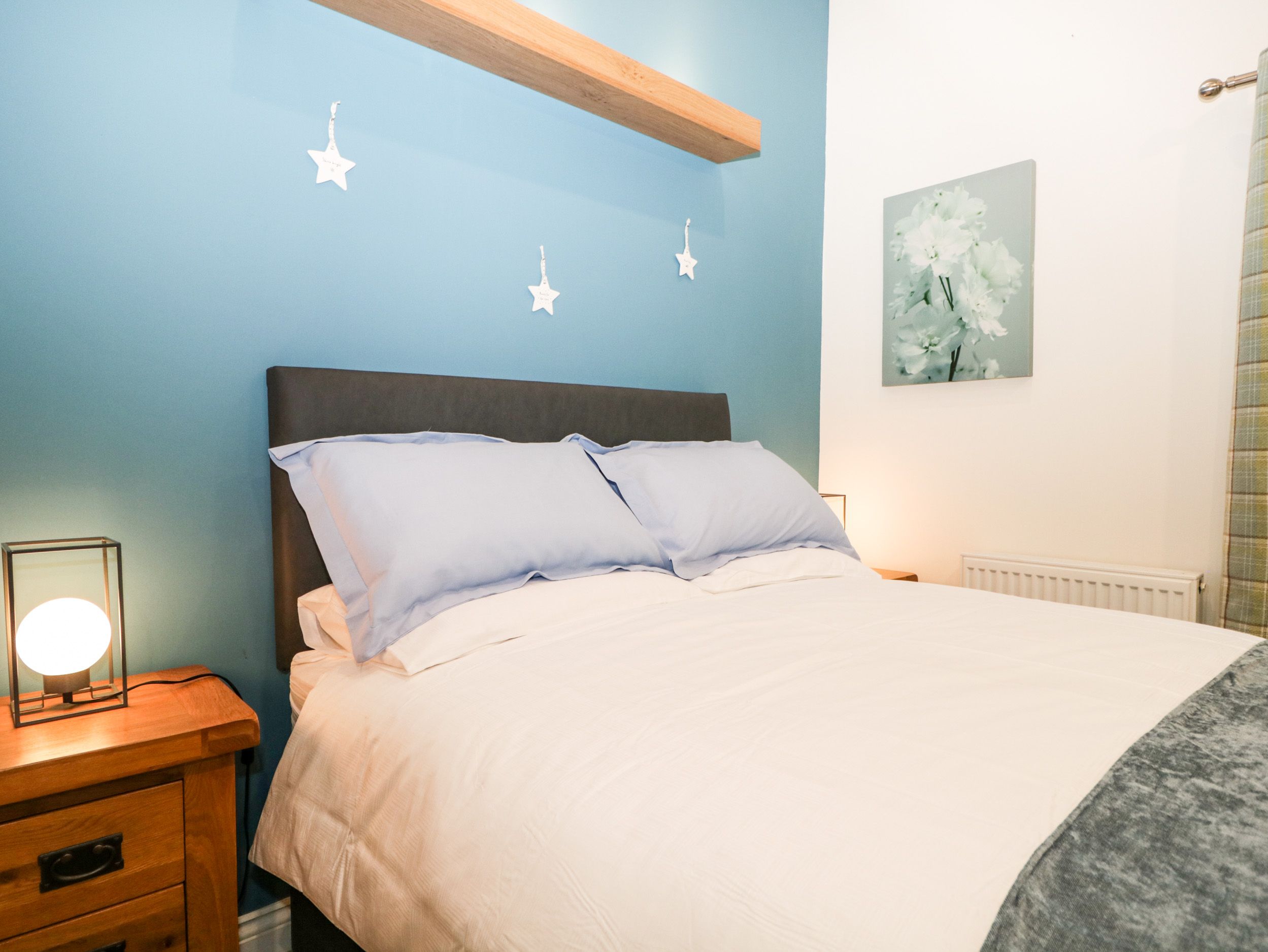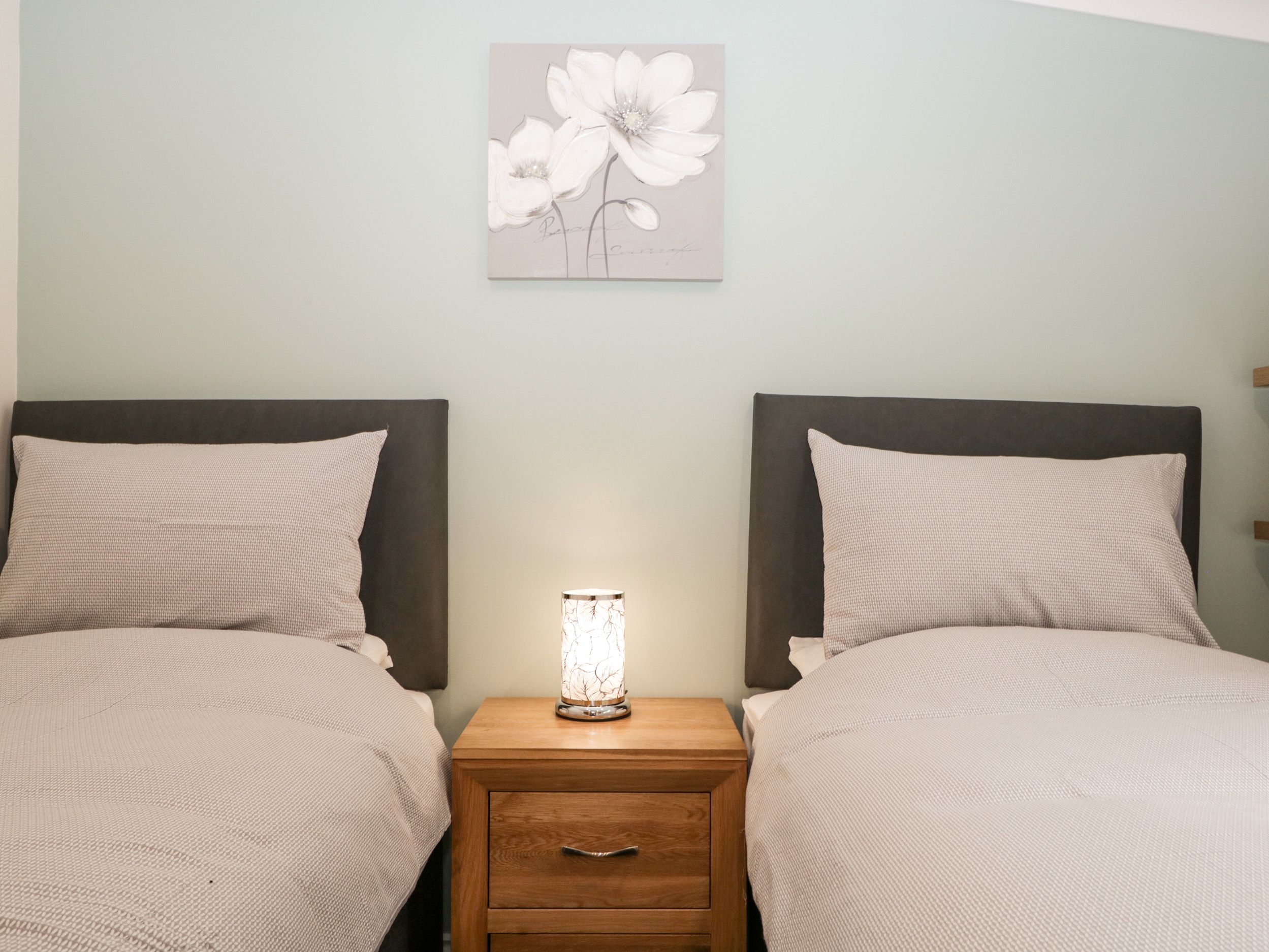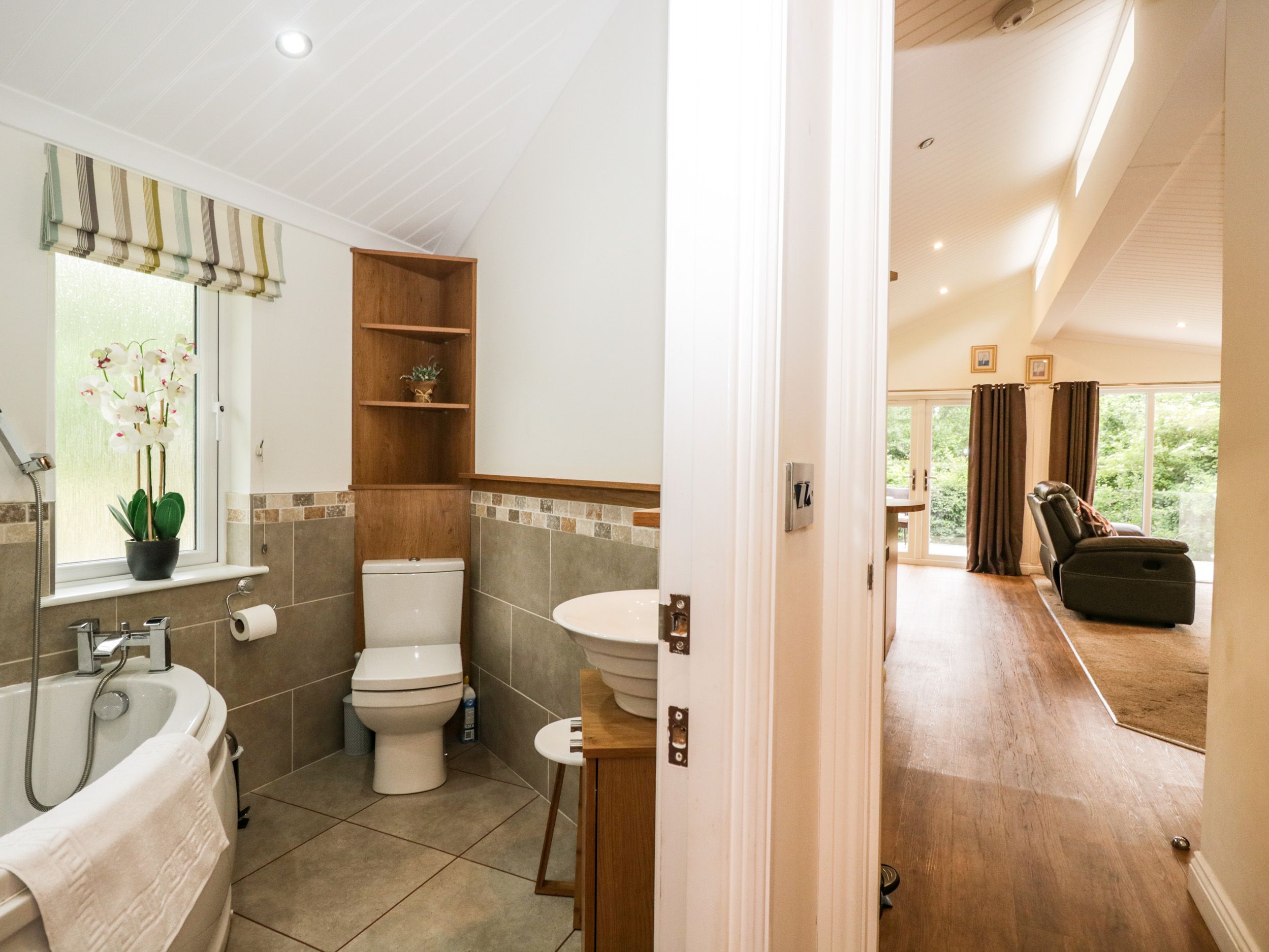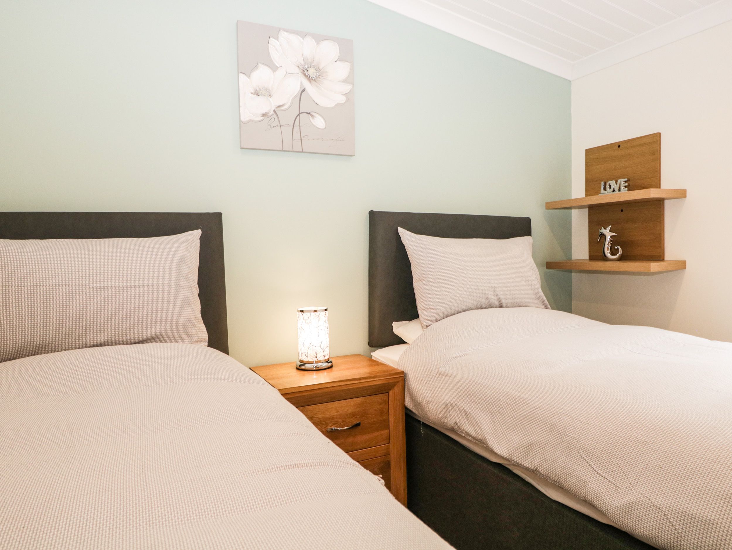 Please note: This property only accepts week-long bookings beginning on Saturdays. Single-storey. Two bedrooms: 1 x double with en-suite walk-in shower, basin and WC, 1 x twin. Bathroom with corner bath, handheld shower, basin and WC. Open-plan living space with kitchen, dining area and sitting area with woodburning stove