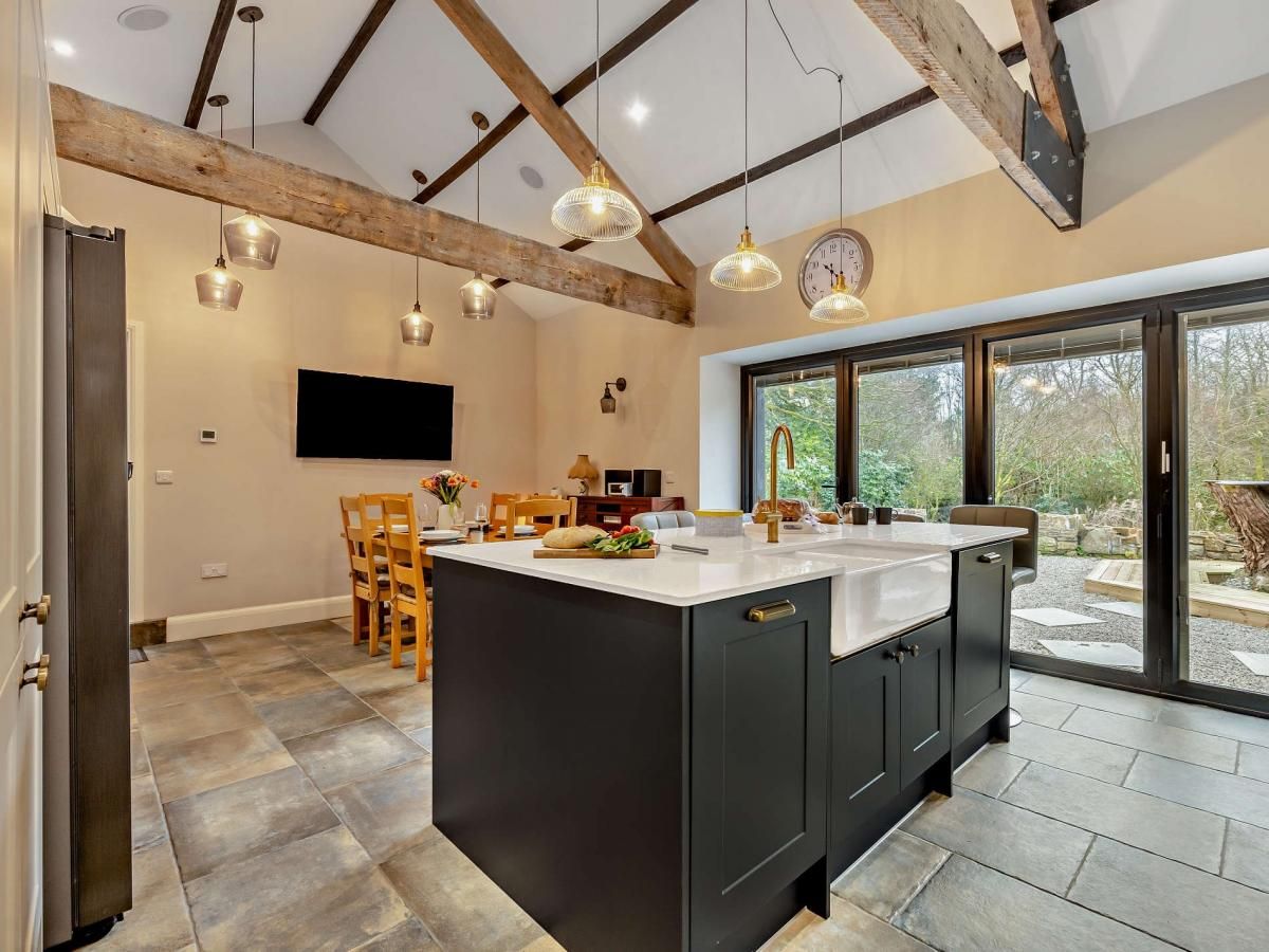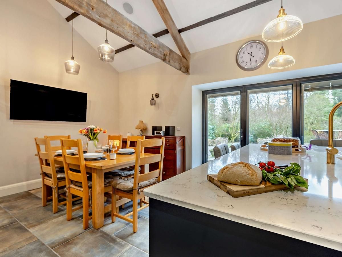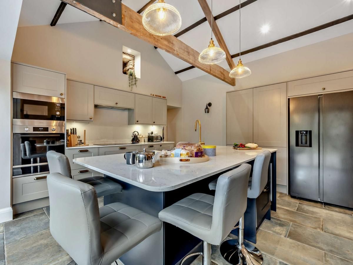 A duo of en-suite bedrooms and a chic, sociable kitchen space make this fabulous country abode an idyllic bolthole for two couples and their canine companions.