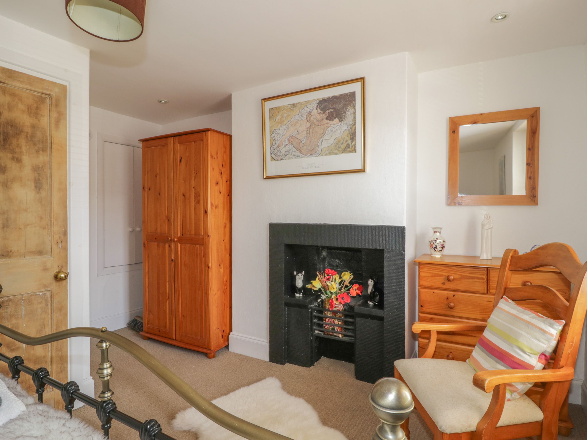 One king-size bedroom. Ground-floor bathroom with shower over bath, basin and WC. Kitchen.Electric oven, gas hob, microwave, fridge, small freezer, TV . Fuel and power inc. in rent. Bed linen and towels inc. in rent. Living room/diner with woodburner (note this is for decorative purposes only). First-floor balcony