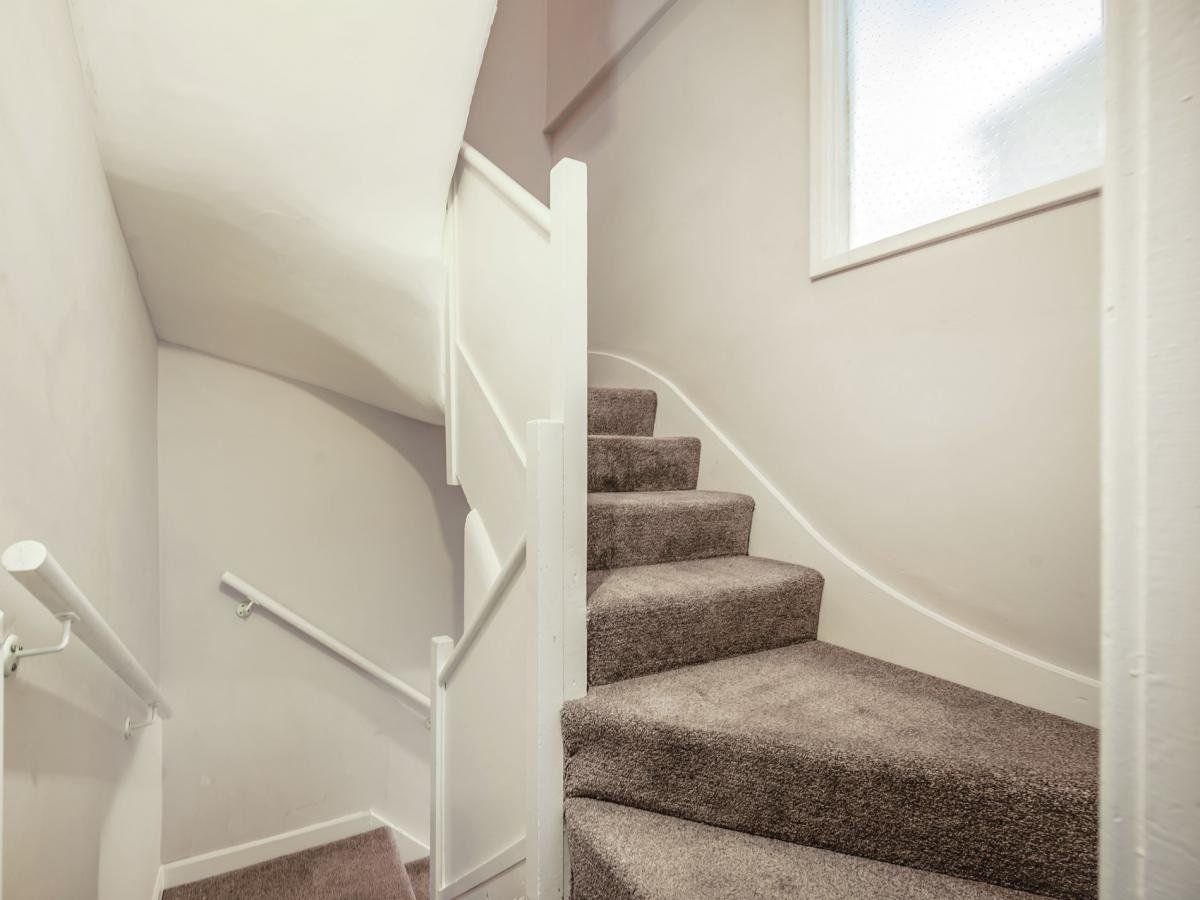 There’s a private entrance up to the smart, contemporary apartment.