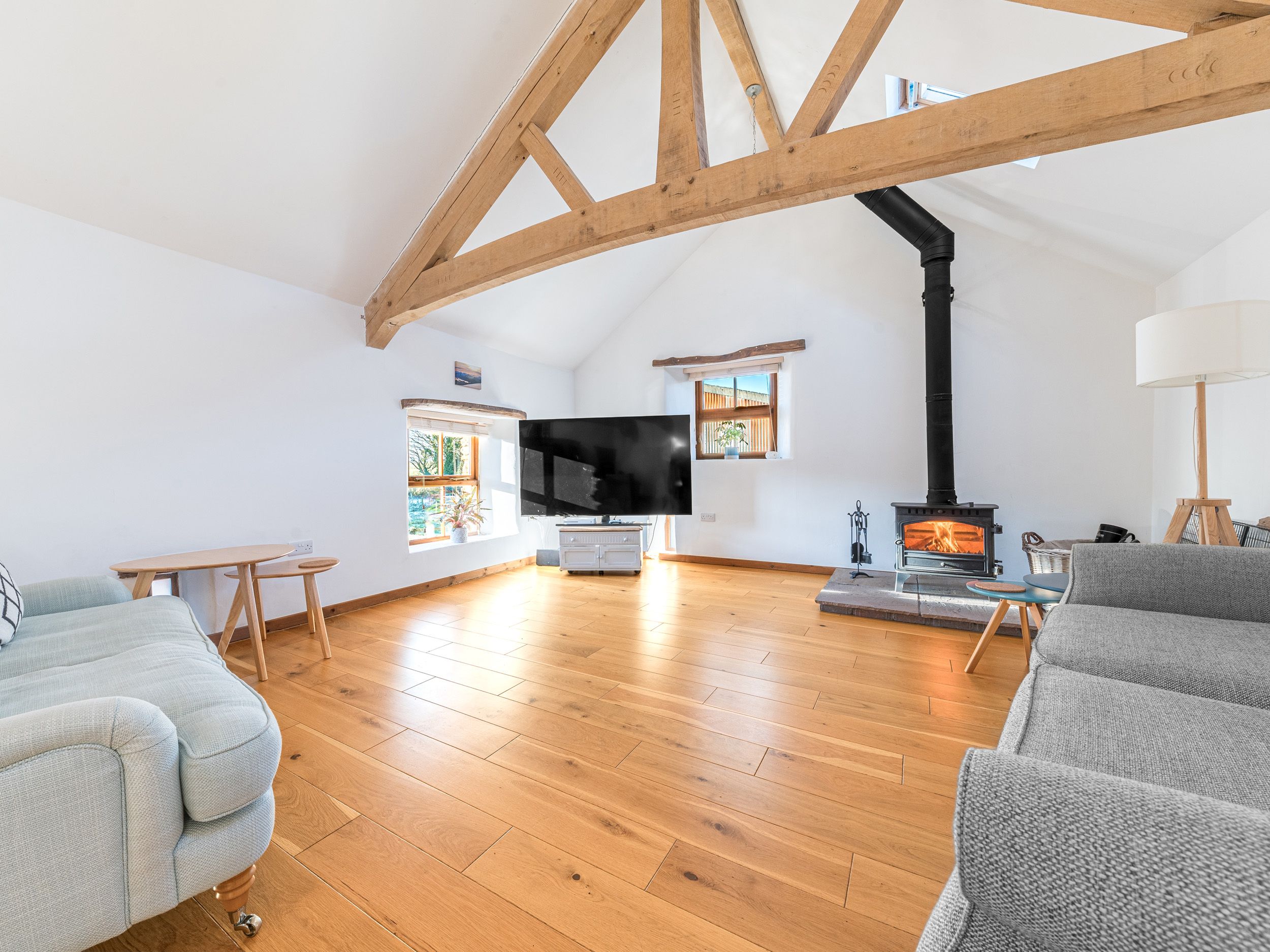 Amenities Oil central heating with partial underfloor heating. Oven, hob, microwave, fridge/freezer, dishwasher, hairdryer. Smart TV, Xbox and WiFi. Bed linen and towels inc. in rent. Highchair available on request. Off-road parking for 3 cars. Rear enclosed garden with gravelled area, lawn, bike storage, log shed, decking and outdoor table and chairs for 6 guests. EV charging port. Starter pack, with a small amount of wood and kindling. Two well-behaved dogs welcome. Sorry, no smoking. Shop 3.1 miles and pub 0.3 miles. Garden dining table with 6 chairs