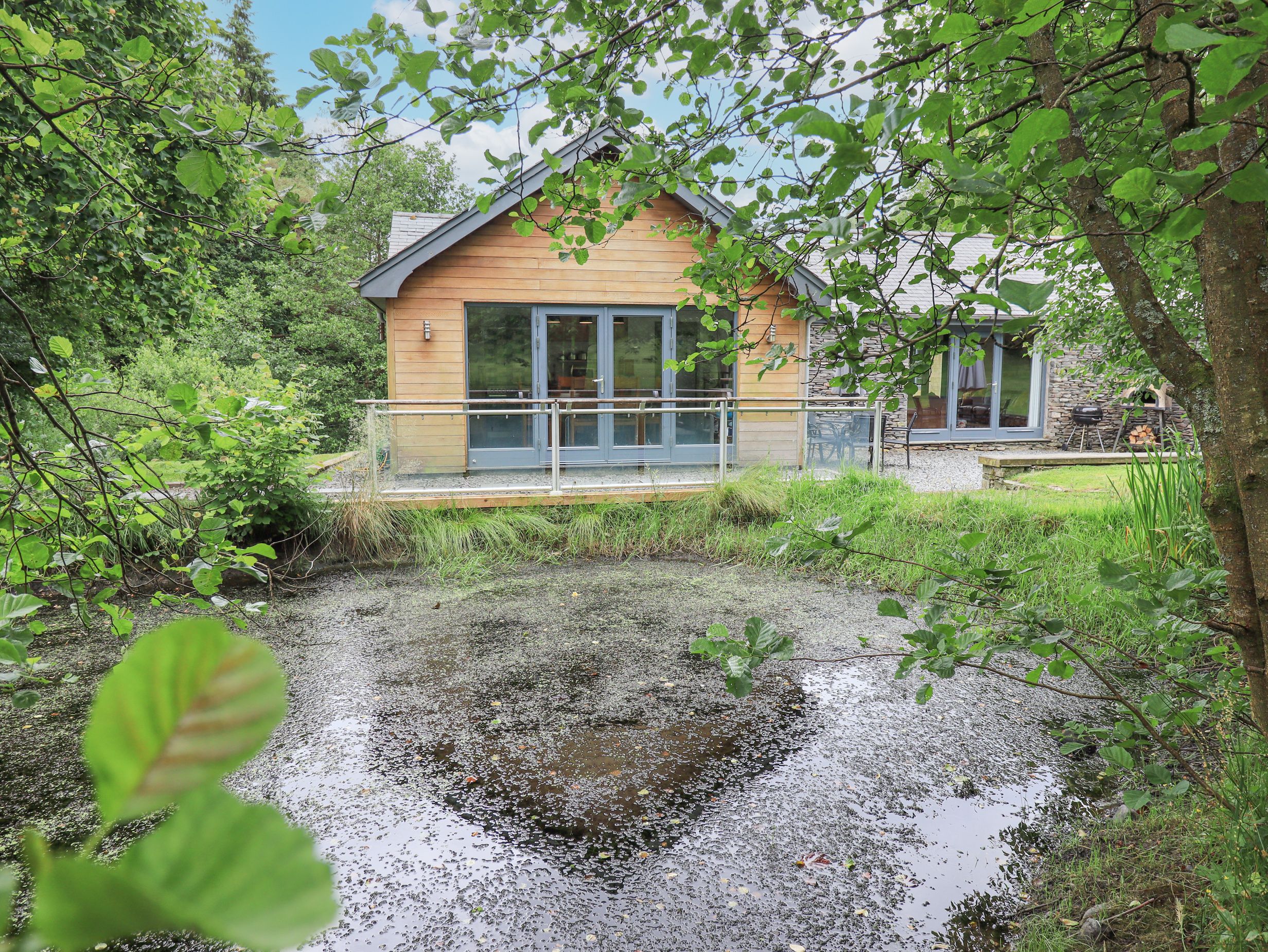 Amenities Gas central heating with woodburning stove. Electric oven and gas hob, microwave, Jamie Oliver Pizza Oven, fridge/freezer, washer/dryer, dishwasher, TV with Sky HD and Sky Sports, WiFi. Fuel, power and starter pack for fire/stove inc. in rent. 2 x travel cot and 1 x highchair available. Off road parking for 10 cars. Extensive lawned garden with woodland and pond. Private hot tub and sauna. Outdoor BBQ and pizza oven. Two well-behaved pets welcome. Sorry, no smoking. Pub 1.5 miles. Shop 7.5 miles. Note: Due to rural location WiFi speeds &/or availability cannot be guaranteed. Please note there is a pond with open access and children should be supervised at the property at all times. Towels are provided for use with hot tub.