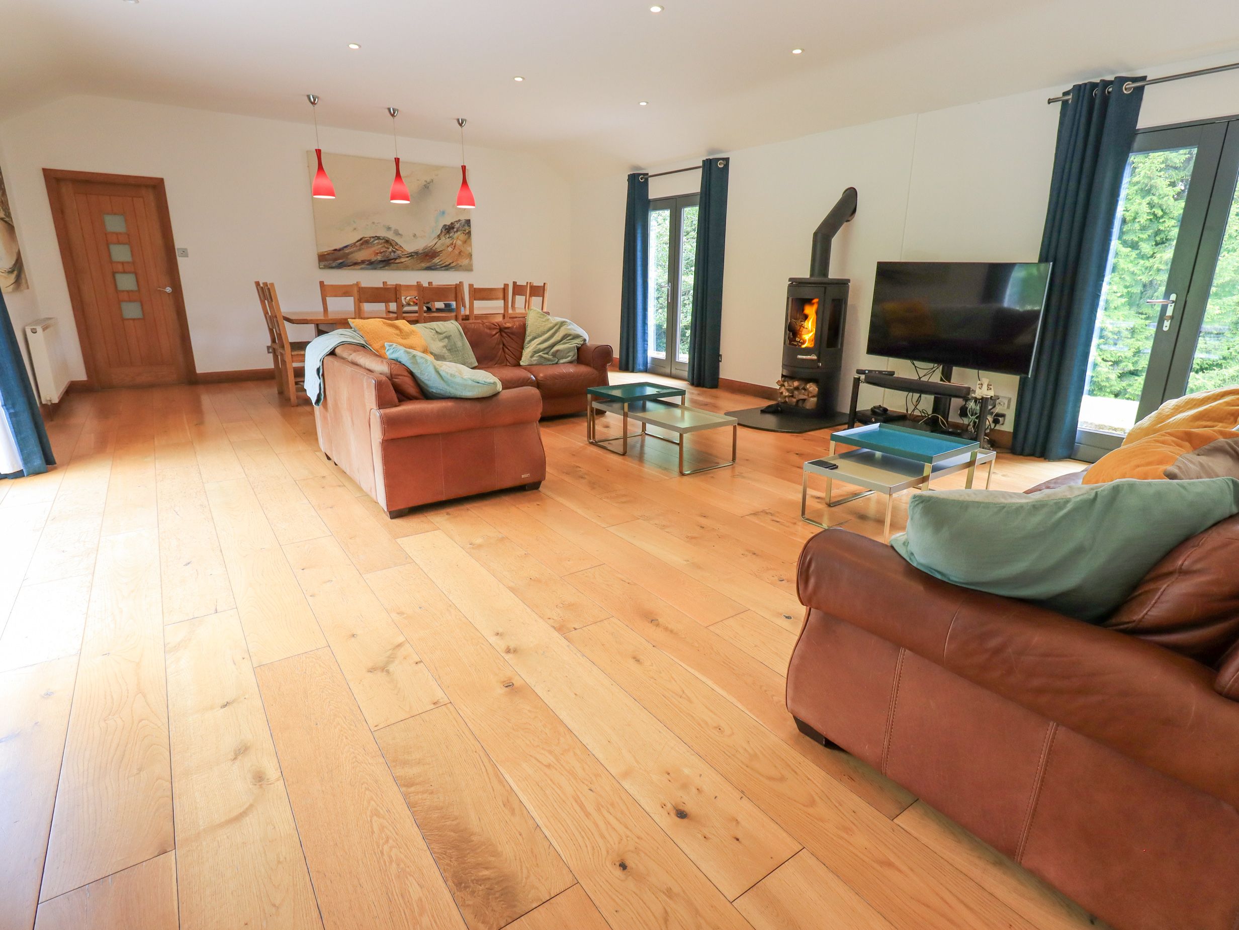 Accomodation Details Five Star Highly Commended property. Five bedrooms: 1 x master king-size bedroom with en-suite shower room, basin and WC, 3 x king-size bedrooms (one with en-suite), 1 x twin bedroom with French doors to the rear. 1 x bathroom with shower over bath, basin and WC. 1 x shower room with basin and WC. Utility. Kitchen with dining area. Sitting room with dining area and woodburning stove. Separate sitting/reading room. Outdoor hot tub, sauna, BBQ and pizza oven