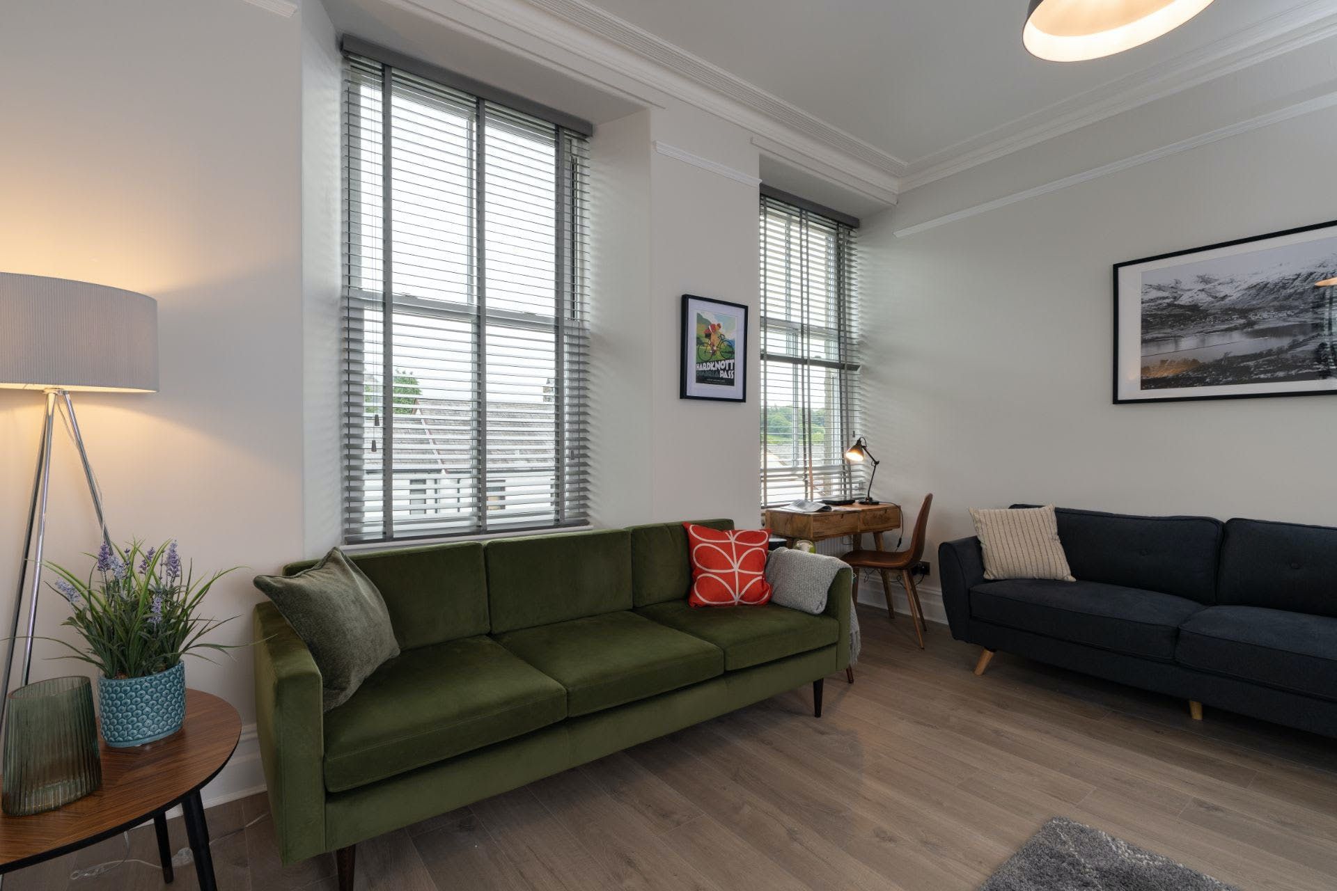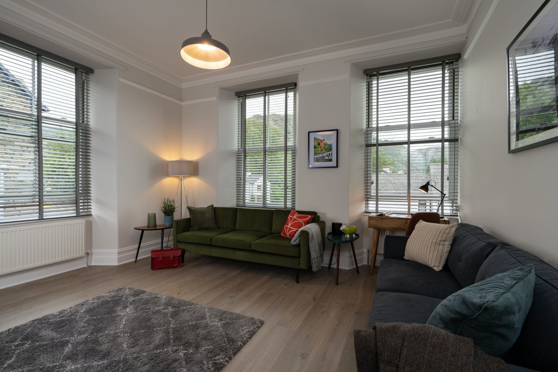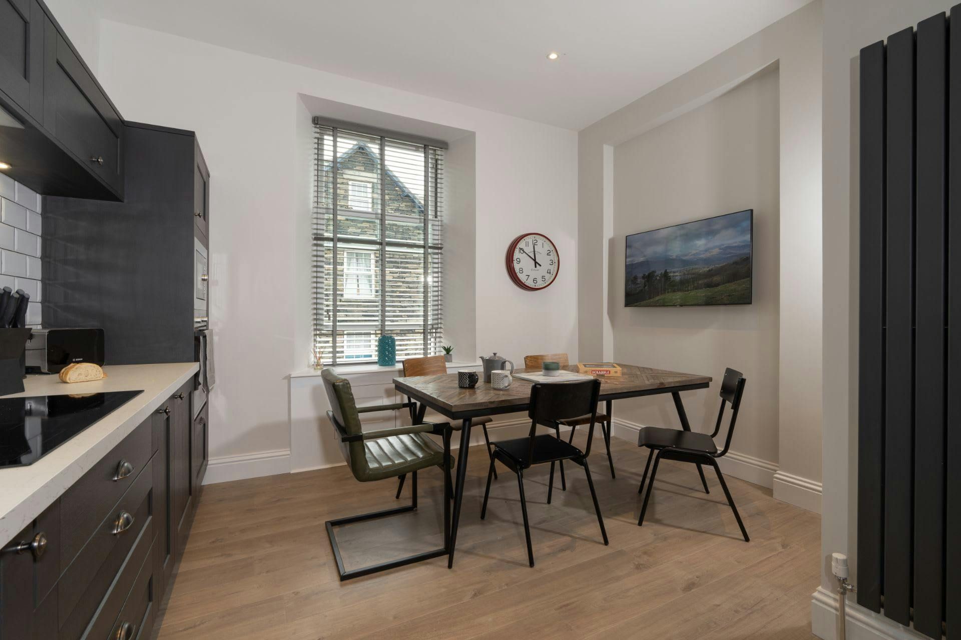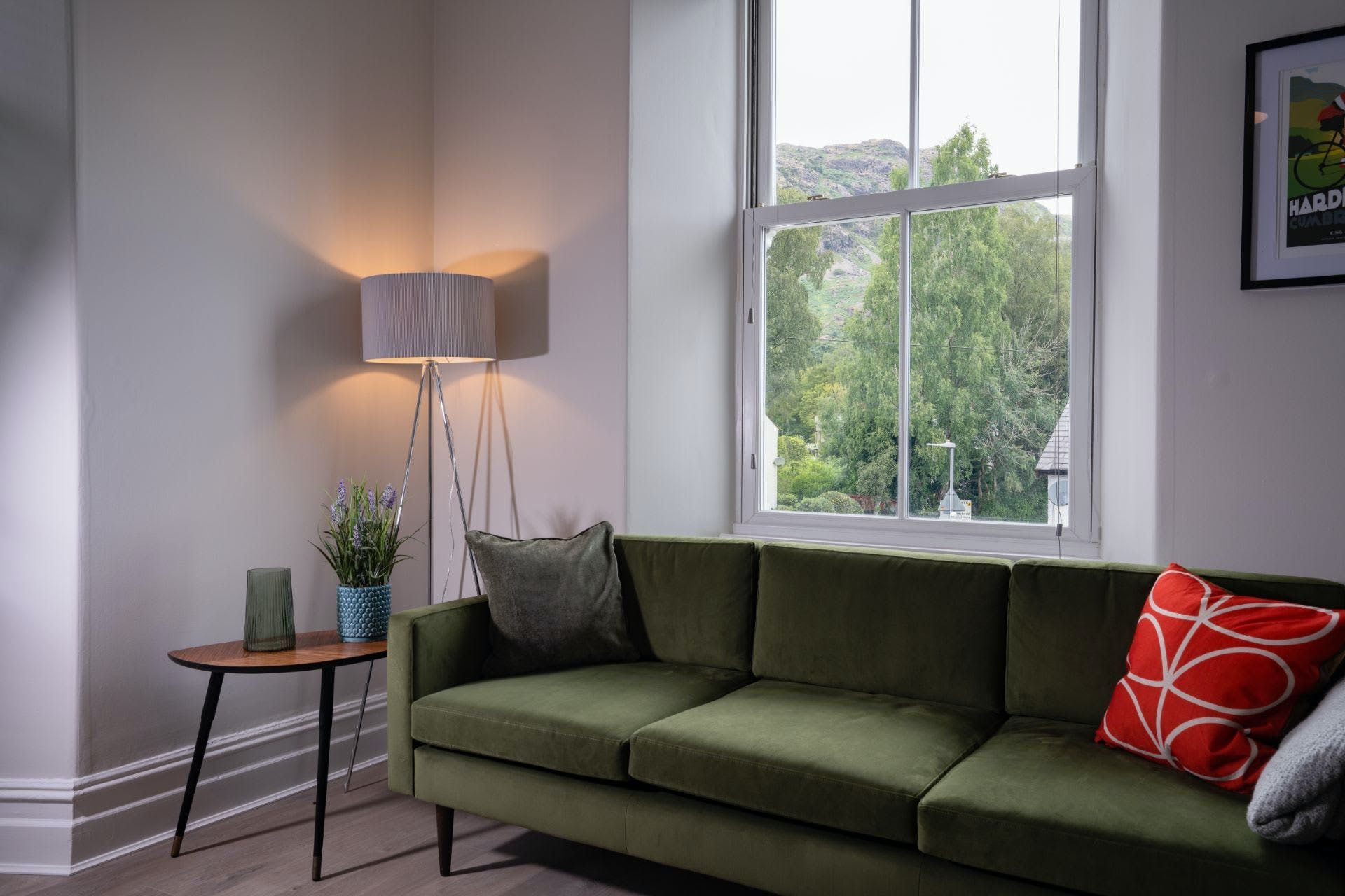 This stylish apartment is perfectly placed for exploring the Lake District. It’s in the centre of the village of Coniston, within walking distance of the lake shore. From here, you can hike the Old Man of Coniston, one of the most striking peaks in the Lakes, and explore the Coniston Fells. The apartment is ideal for couples and families, with everything you might need for a cosy break. We love the views from the living room, and the sleek open-plan kitchen and dining space.