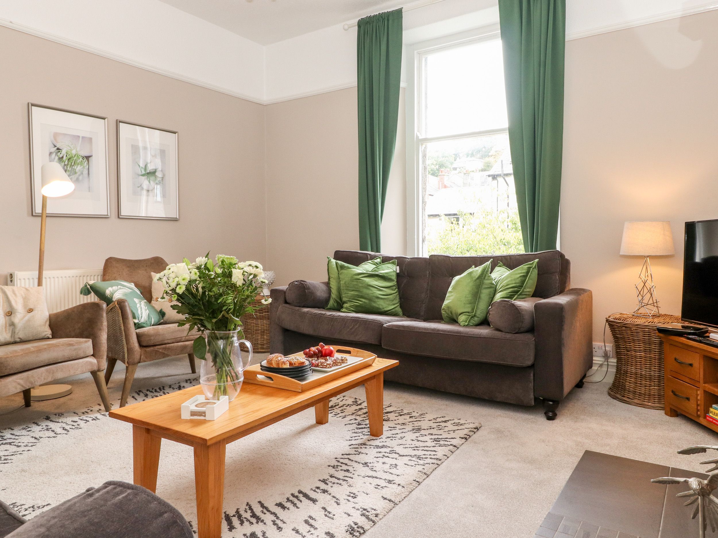 Amenities Gas central heating. 4 x TVs (three with FreeSat, one with Freeview), DVD, Blu-ray, WiFi. Fuel, power and starter pack for woodburning stove inc. in rent. Bed linen and towels inc. in rent. Travel cot (no cot mattress or bedding supplied) and highchair on request. Off road parking for 2 cars, only in designated parking bays, additional parking available in public car park nearby. Enclosed patio with furniture, private lockable bike storage. Sorry, no pets and no smoking. Shop 0.1 miles, pub 0.2 miles, coast 0.1 miles. Note: Six steps leading up to the property, and steps leading down to the patio and bike storage. Note: This property is located above a convenience store. Note: Check-in from 4pm, check-out at 10am