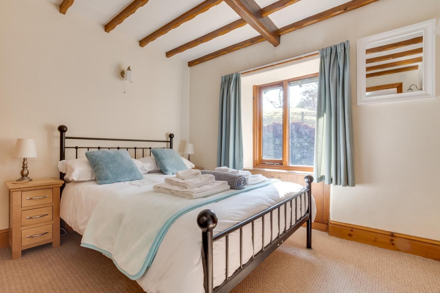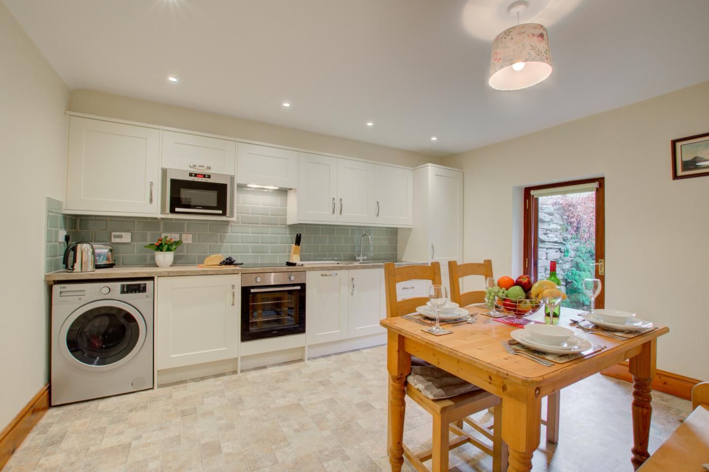 The cottage is all on one level making it ideal for those who require no stairs. Through the covered porch (handy for leaving those muddy boots in) you have the hallway with the living room directly to your left as you enter, here you have comfortable seating on two sofas and dual aspect windows giving you glorious vistas towards sour milk ghyll and the fells beyond.