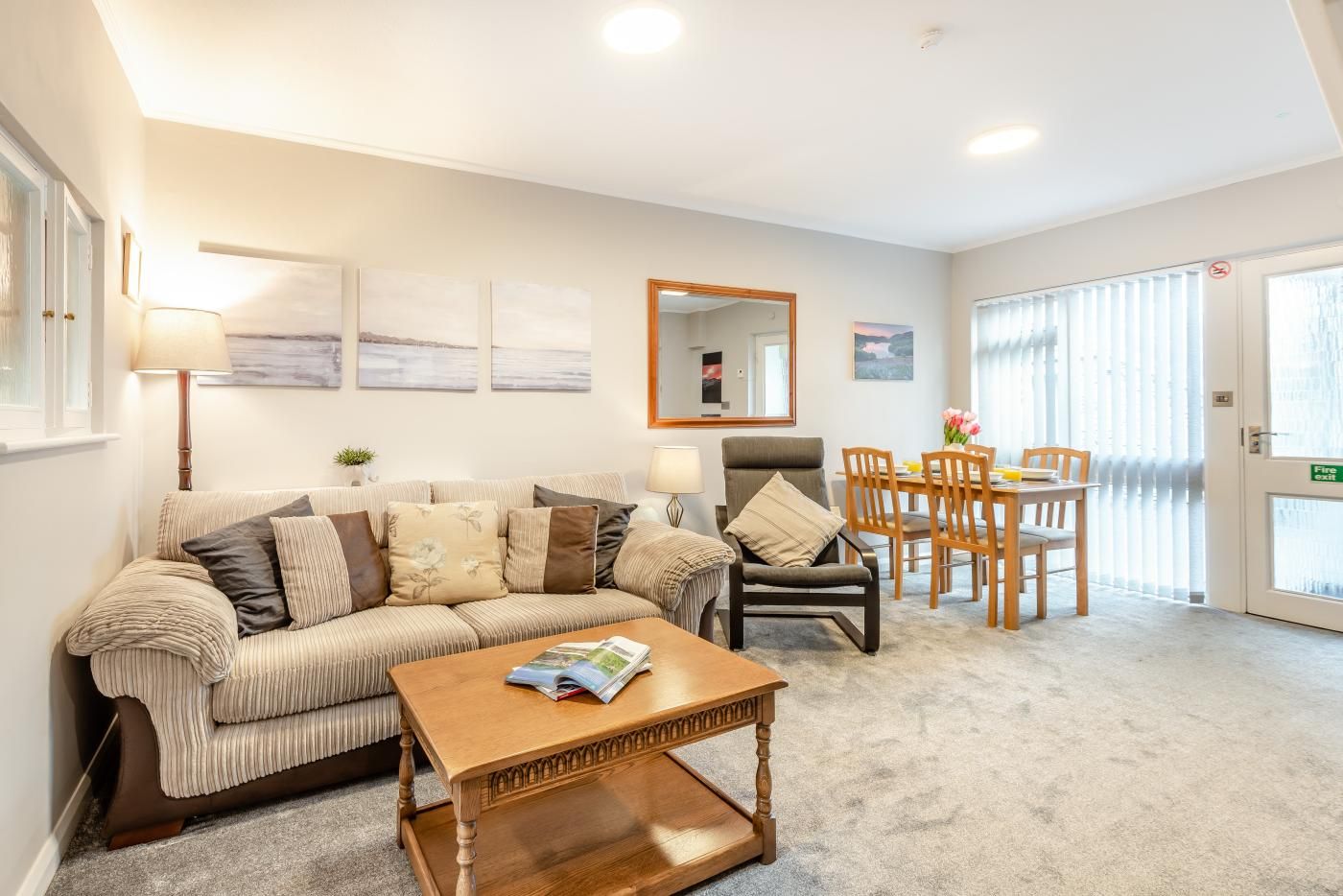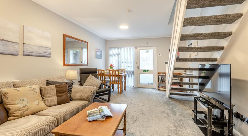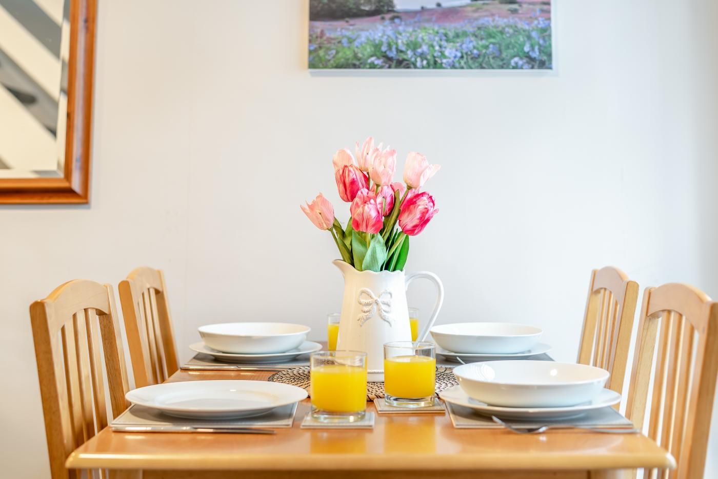 The ground floor has a large living /dining room with comfortable seating for you to relax on in front of the smart tv or to plan your day's adventures, the dining table seats 4 with views of the courtyard.