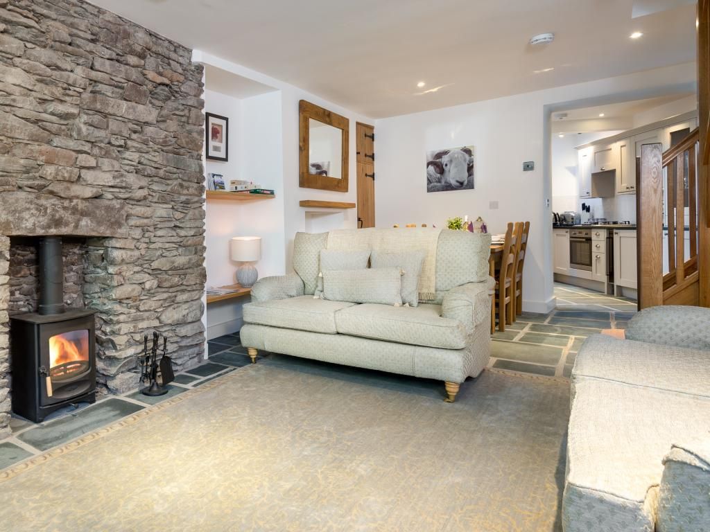 It oozes rustic charm, with slate flag floors, oak latch doors, sash windows and cast iron radiators. A real gem of a Lake District cottage! With a spacious open-plan living space, a gorgeous modern kitchen and two charming double bedrooms, both en-suite, the house is well suited to two couples.
