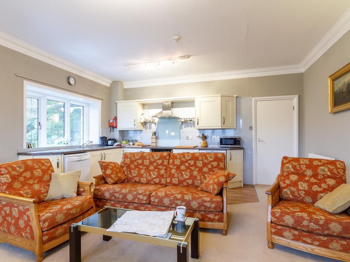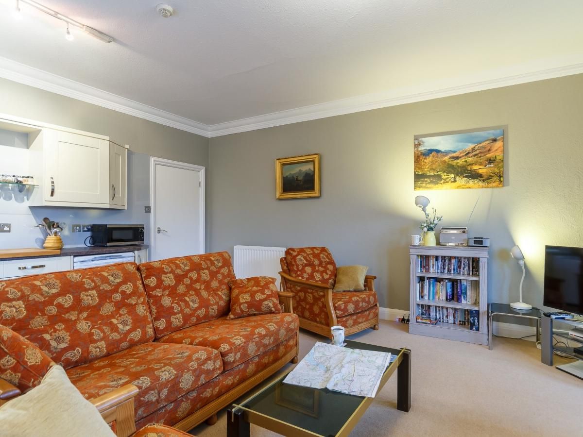 From here, make the most of the exquisite, shared gardens that offer space to sit out in the sunshine and gaze out at the views, as well as for children to play. Sleeping four guests, the two-bedroom, first-floor holiday home is also in an excellent position for strolling into Hawkshead, 1.