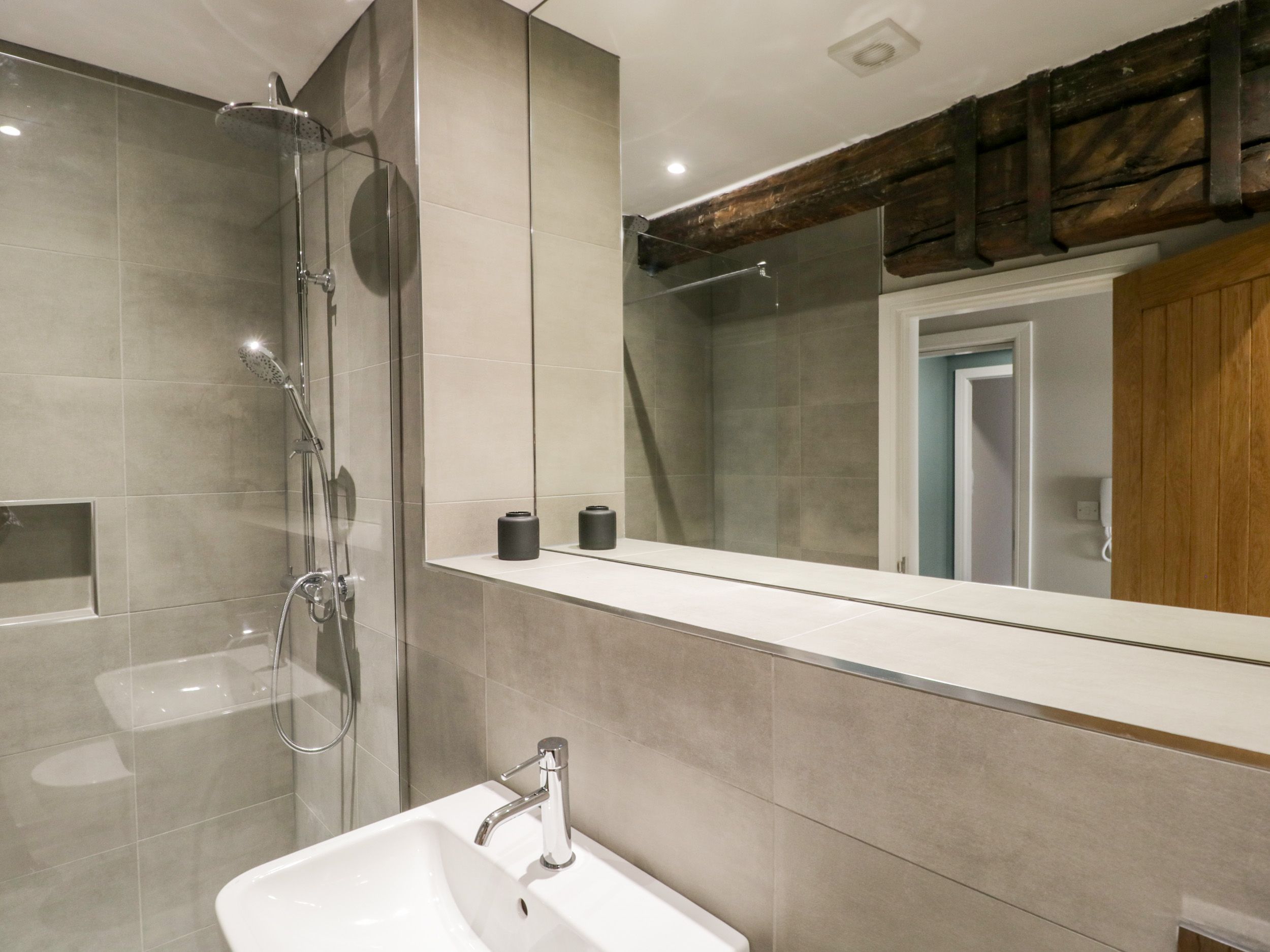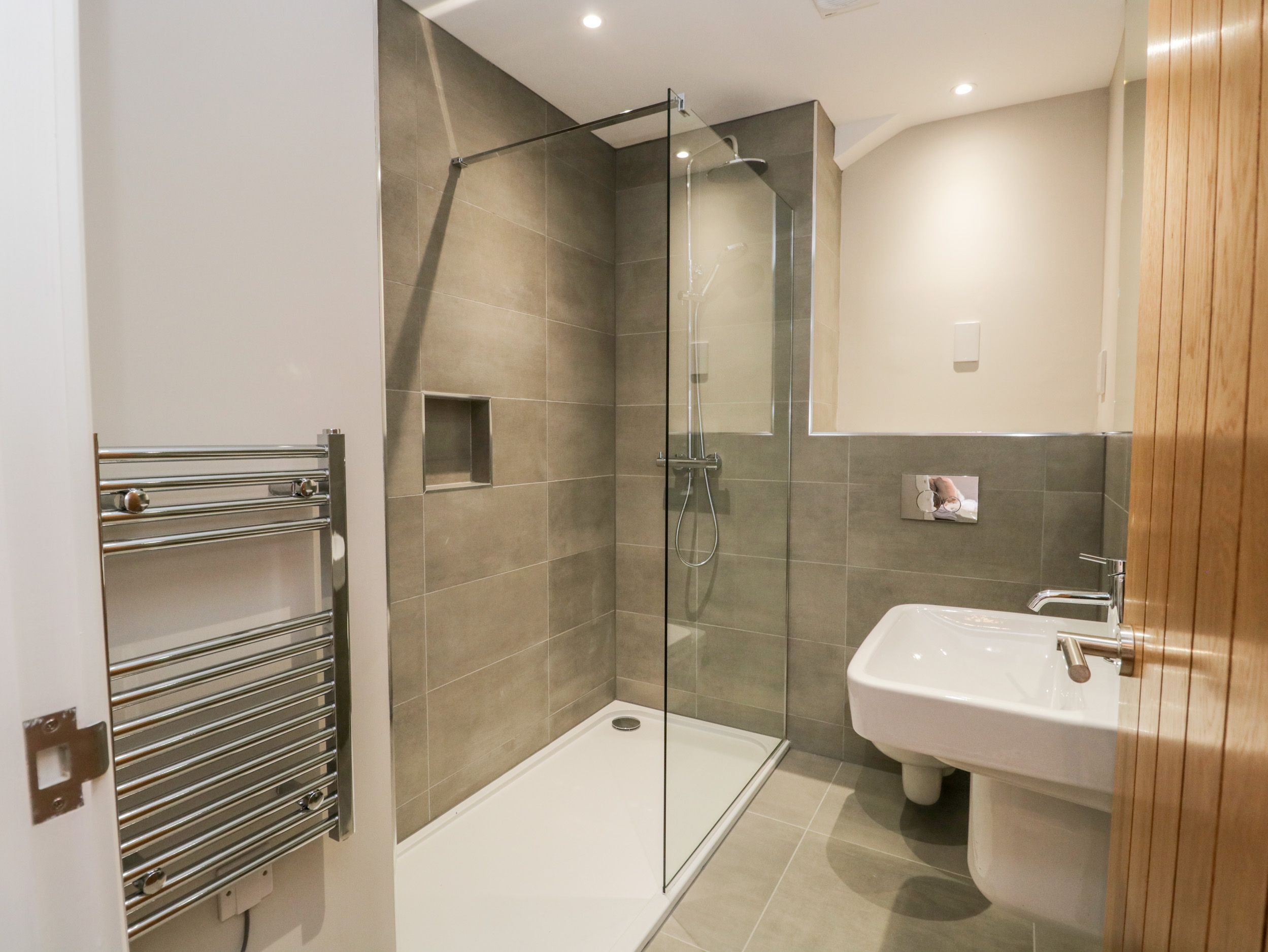 Accomodation Details A fantastic contemporary spacious and newly modernised apartment, centrally located with private bathrooms for every bedroom. Second-floor apartment. Two bedrooms; 1 x super-king-size (can be twin on request) with en-suite walk-in shower, heated towel rail, basin and WC, 1 x twin (can be super-king-size on request). House bathroom with large walk-in shower, basin, heated towel rail and WC. Open-plan living space with kitchen, dining and sitting area. Cloakroom. Communal laundry room off first floor lobby with washing machine and tumble dryer