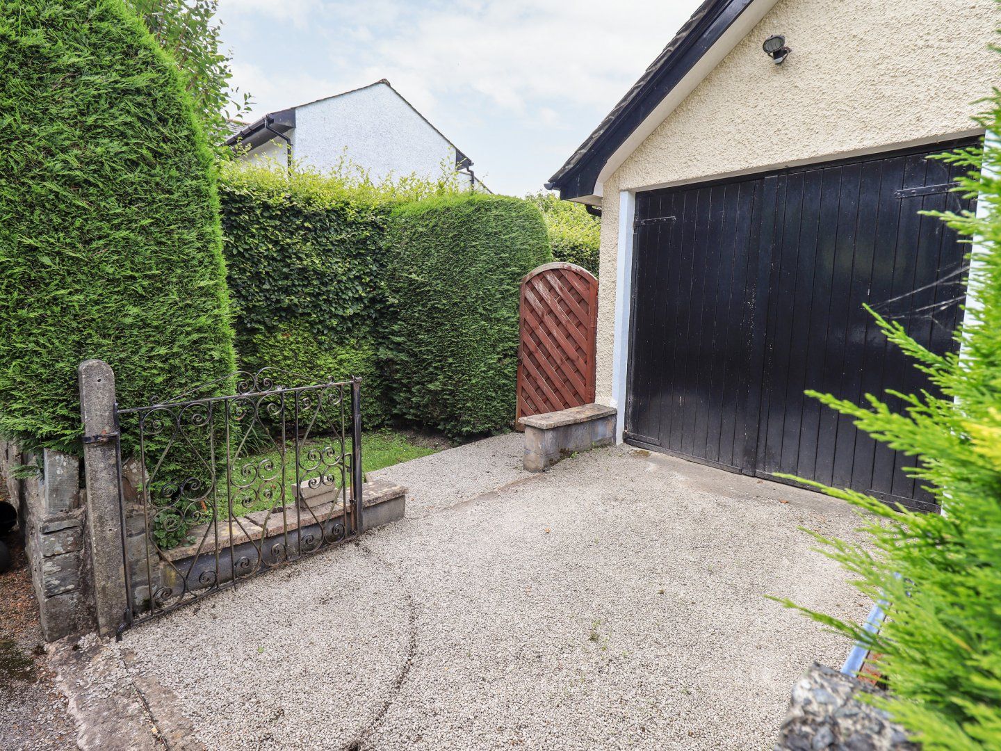 Garage suitable for storing bikes and canoes.