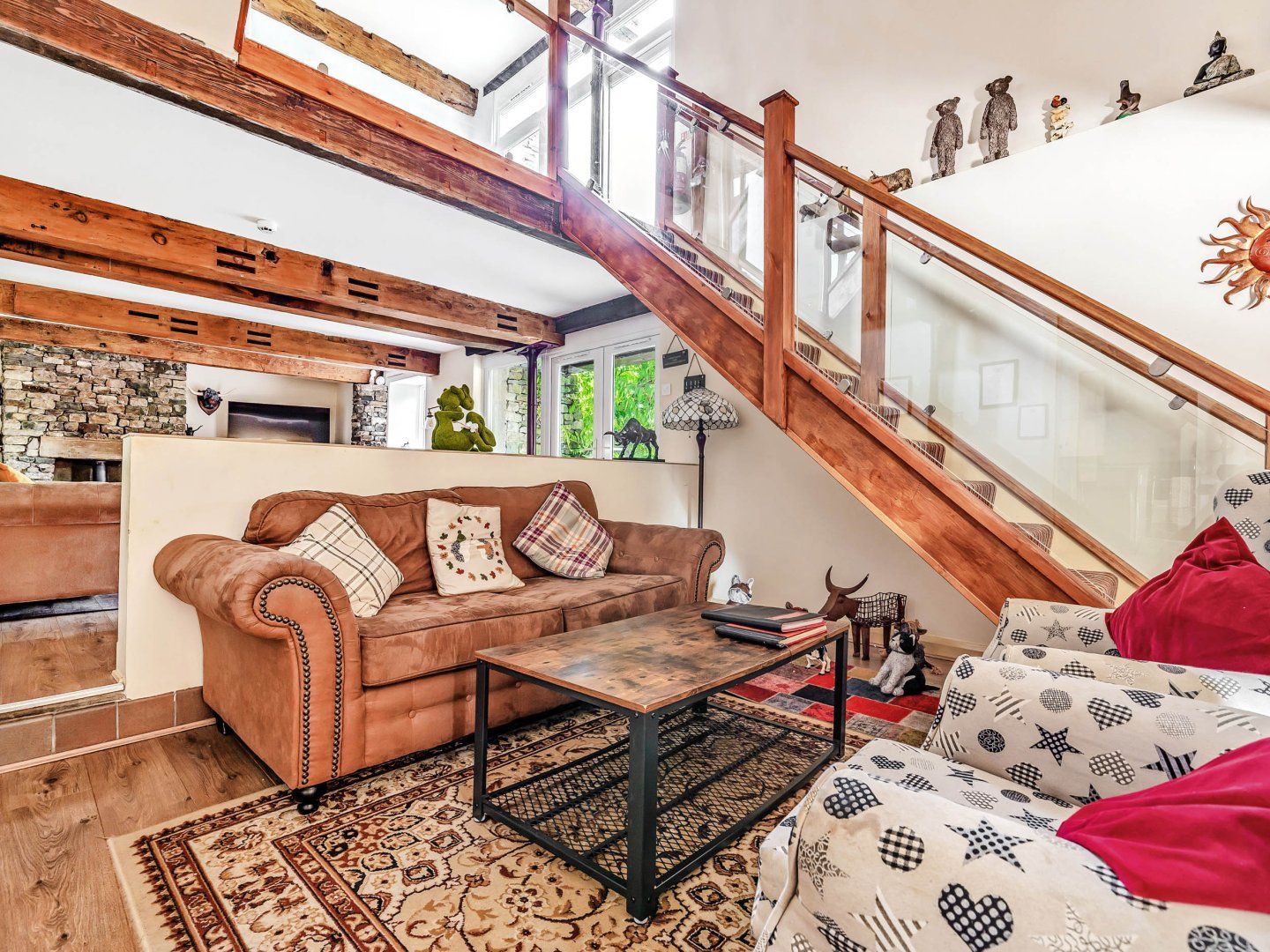 Holiday home Eden Mill is a luxury cottage located in the village of Stainton, Cumbria. Hosting nine bedrooms; two second floor family rooms with en-suites, three second floor doubles with en-suites, two first floor doubles with en-suite, a first floor double, and a first floor twin, along with a shower room, this property can sleep up to twenty people. Cot and highchair available ( no stairgate ) . Inside you will also find a ground floor cloakroom, first floor kitchen/diner, a ground floor kitchen with breakfast island, utility, sitting room with woodburning stove, mezzanine sitting room with balcony, and a conservatory/dining area. To the outside is off-road parking for five cars, and a garden with lawn, patio, decking, furniture, hot tub, barbecue and sauna. Please note, 7-night bookings and weekend short breaks may only check in on Fridays, short breaks are also welcome mid-week. Three well behaved dogs welcome.