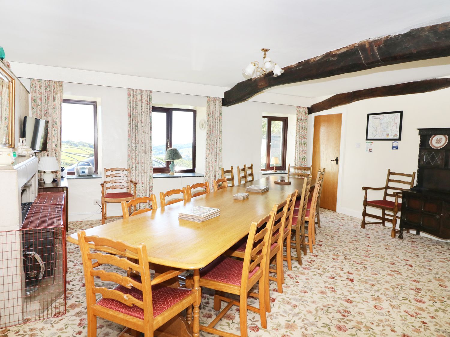 Eight bedrooms: 1 x first floor double with en-suite bath, basin & WC – also accessed via landing, 1 x first floor double, 2 x first floor family rooms with 1 double & 1 single (one with en-suite bath, basin & WC), 1 x first floor twin, 1 x first floor bunks, 1 x ground floor double leading to 1 x twin with adjacent shower room with shower, basin and WC. First floor shower room with shower, basin & WC. First floor shower room with shower only. Ground floor WC. Fitted kitchen. Dining room with TV & woodburner. Utility. Large sitting room with TV and open fire. Hall with open fire.