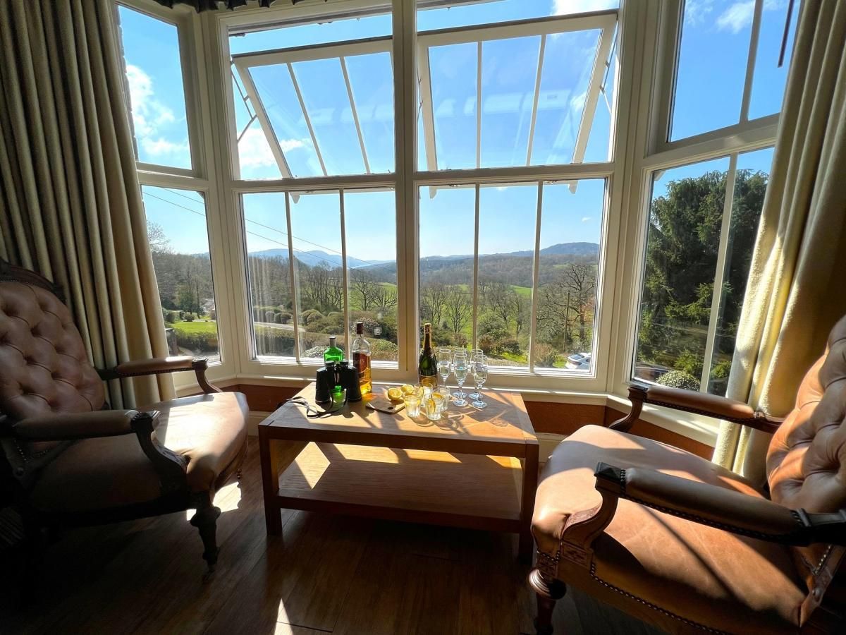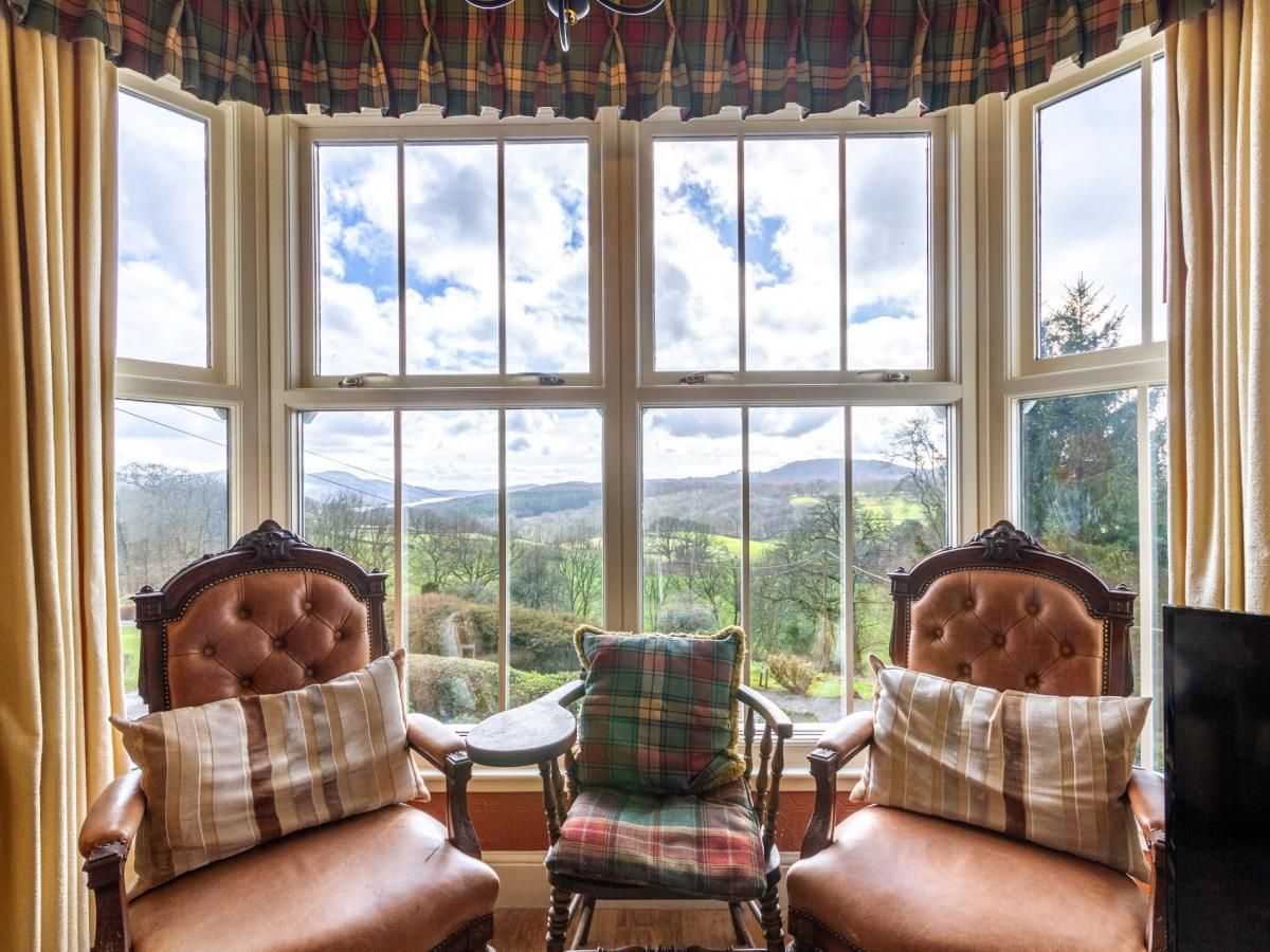 Sleeping five people and also welcoming one dog, the three-bedroom holiday home is set on the first floor of an impressive Victorian Gothic mansion. Step out from here to enjoy the beautiful, shared gardens or to stroll off on scenic walks.