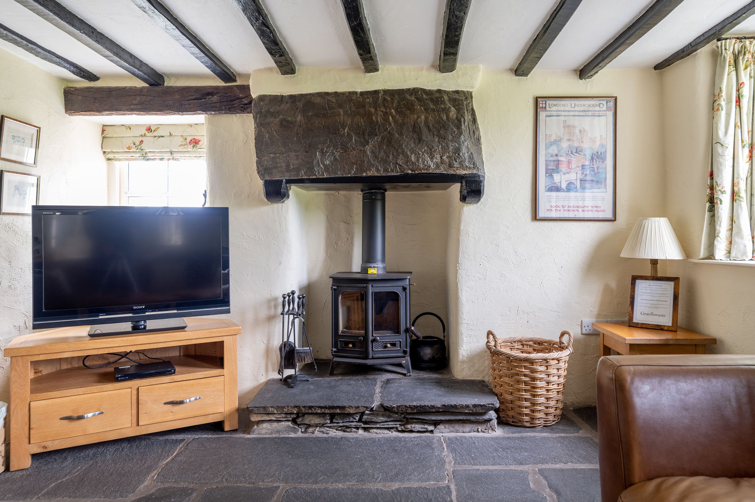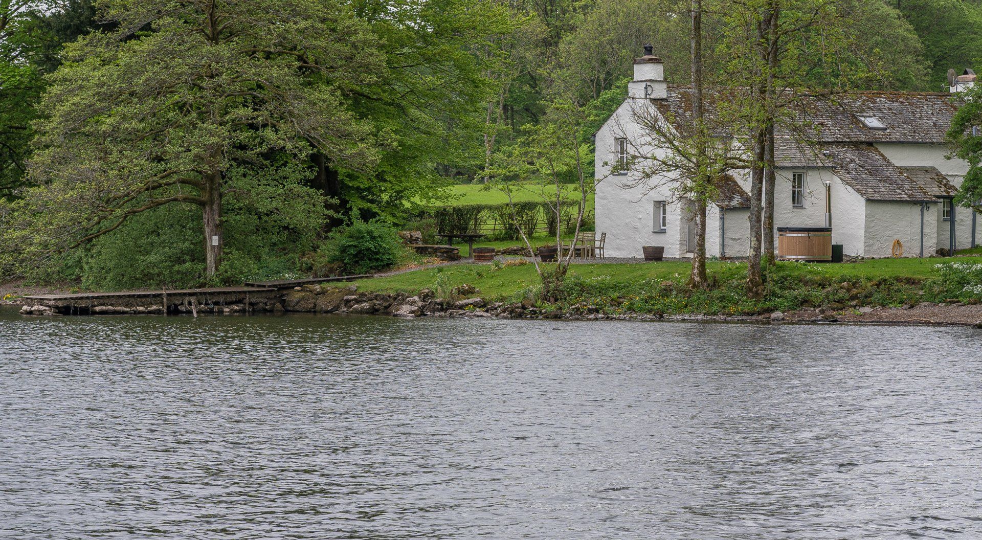 Amenities Heated by woodchip boiler (underfloor in sitting room) with woodburner. Electric oven, gas hob, microwave, fridge/freezer, washing machine, tumble dryer, dishwasher, TV with Freeview, DVD, WiFi available at Home Farm courtyard (approximately 5 minute drive from property). Fuel, power and a starter pack of logs for woodburner inc. in rent. Logs can be purchased at the farm shop. Bed linen and towels inc. in rent. Travel cot and highchair. Off-road parking for 2 cars. Lakeside patio with jetty and furniture. Shared use of estate grounds and facilities 40 mins walk, inc. indoor heated swimming pool, table tennis room (please bring your own racquets and balls), children's play area, 2.5-acre trout fishing lake. Two well-behaved dogs welcome. Sorry, no smoking. Shops 5.3 miles, pubs 2 miles. Water from private supply, fed from freshwater lake. To avoid disappointment, we recommend booking Graythwaite Adventure in advance. Graythwaite fishery is free for all guests and equipment can be hired locally, a small fee is applicable to keep your catch, rod fishing license required. Mobile reception at this cottage is generally good. Please Note: This property is accessed via a half mile woodland track, not suitable for low-profile cars. Please Note: This property has a £500 Good Housekeeping Bond.