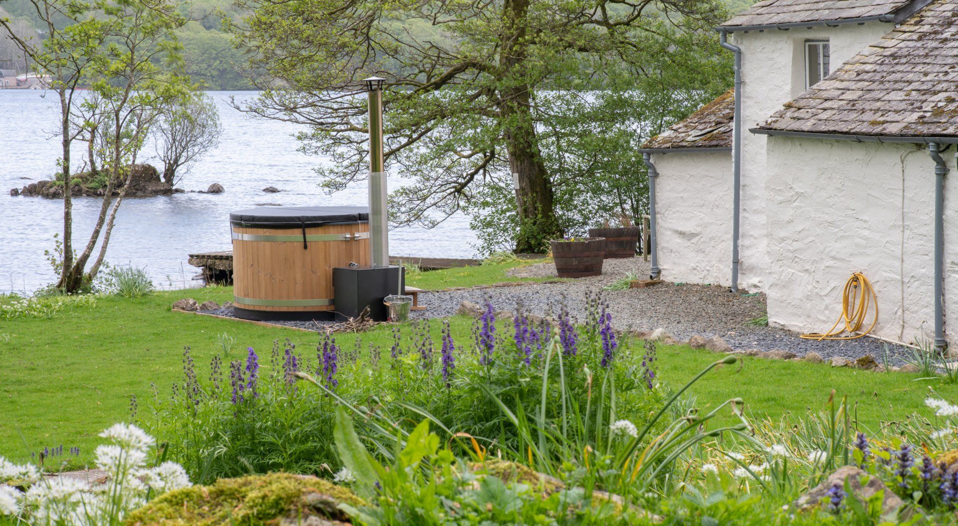 Holiday home Hullet Hall is a beautiful, detached cottage resting beside Lake Windermere on the delightful Graythwaite Estate, near Hawkshead in Cumbria. With three bedrooms including one en-suite king-size double and two twins, this cottage can sleep six people. There's also a shower room, a kitchen with dining area and a sitting room with a woodburner. Outside, there is off road parking for two cars plus a lakeside patio with furniture, wood fired hot tub and jetty. With gorgeous scenery surrounding the property and superb shared facilities including a pool, table tennis room, children's play area and 2.5-acre fishing lake located just 40 minutes' walk away, Hullet Hall is an ideal holiday home.