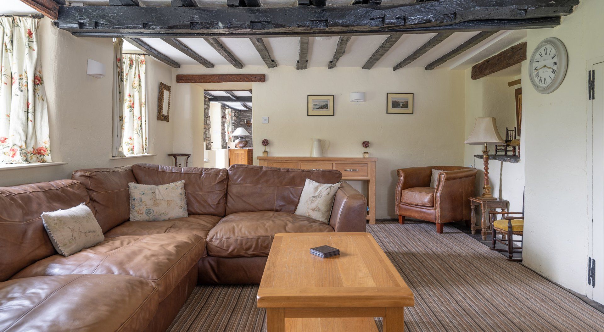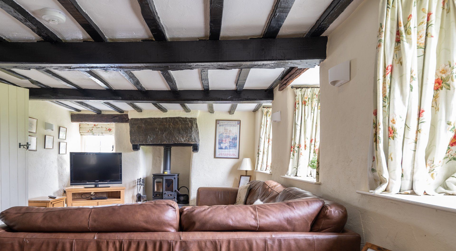Accomodation Details Three bedrooms: 1 x king-size double with en-suite bath, basin and WC, 2 x twin. Shower room with shower, basin and WC. Kitchen with dining area. Sitting room with woodburner. Wood fired hot tub.