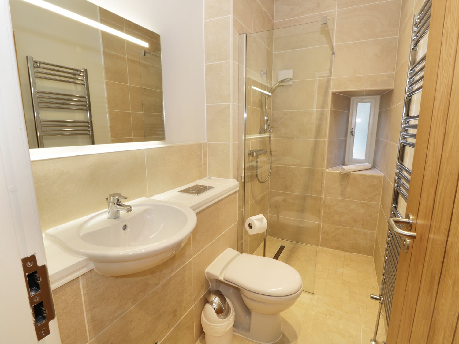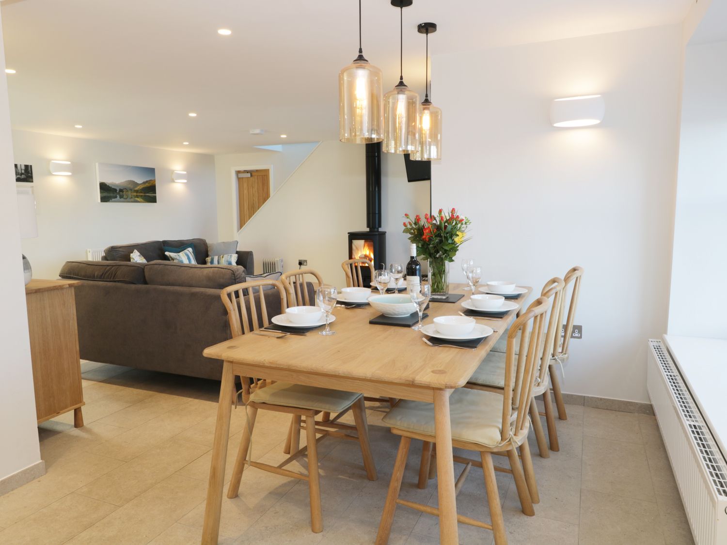 Accomodation Details Three bedrooms: 1 x ground-floor king-size double with en-suite shower, basin and WC, 1 x first-floor king-size double with en-suite bath, shower over, basin and WC, 1 x first-floor king-size double with en-suite shower, basin and WC. Cloakroom with basin and WC. Open-plan living space with kitchen, Electric oven and hob, microwave, fridge, freezer, washer/dryer, dishwasher, Dining area and sitting area with woodburning stove and balcony.
