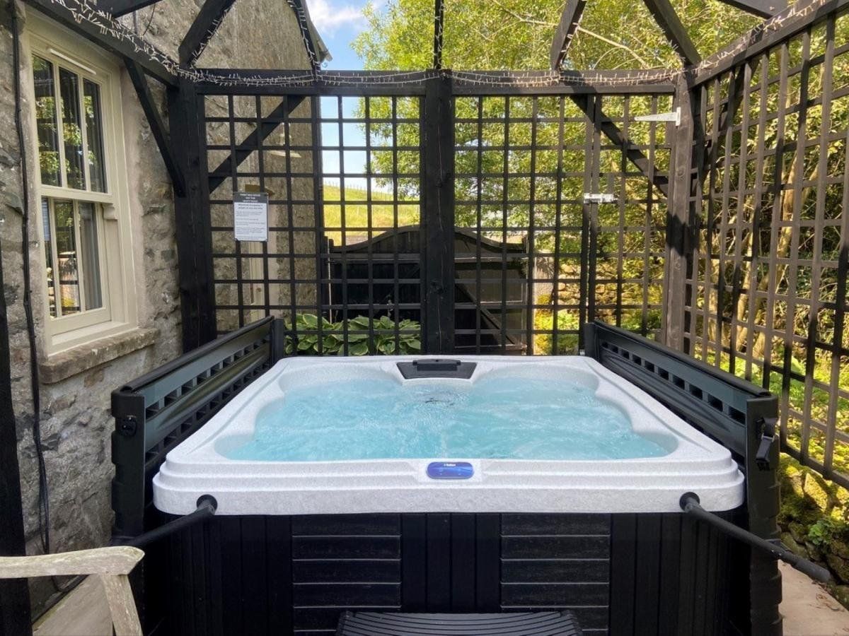 There are beautiful walks on your doorstep, and it has a ground-floor bedroom and shower room, a wood burner, an open fire, and an enclosed garden, with a BBQ, patio, and luxurious hot tub.