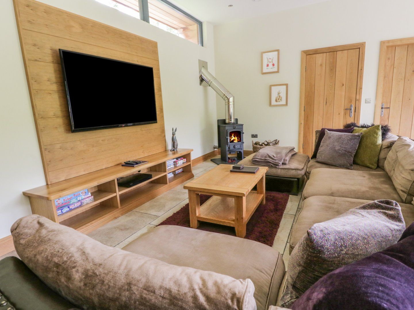 Amenities Gas underfloor heating throughout with woodburning stove. Electric oven and induction hob, microwave, fridge with ice maker and water chiller, freezer, washer/dryer, dishwasher, 4 x Smart TVs with Freeview, Blu-ray, Bluetooth speaker, WiFi. Fuel, power and starter pack for stove inc. in rent. Bed linen and towels inc. in rent. Travel cot and highchair available to hire. Off road parking for 2 cars. Private patio with furniture and BBQ and shared use of extensive lawn and grounds. Private hot tub. Sorry, no pets and no smoking. Shop 2 miles, pub 1.6 miles. Note: Fly fishing available on-site, environmental licence required. Fishing free for one rod on a catch and release basis, at extra cost for more rods and there's an extra cost if you wish to keep any of the fish. Note: Due to fly fishing lake on-site, children must be supervised at all times. Note: Although this property has wheelchair access, there are steps down from the property to the hot tub. Note: WiFi is suitable for general browsing only, not downloading or live streaming. Note: Max 6 people, plus 1 infant. Note: Check-in 4pm. Note: This property has a Good Housekeeping bond of £100.