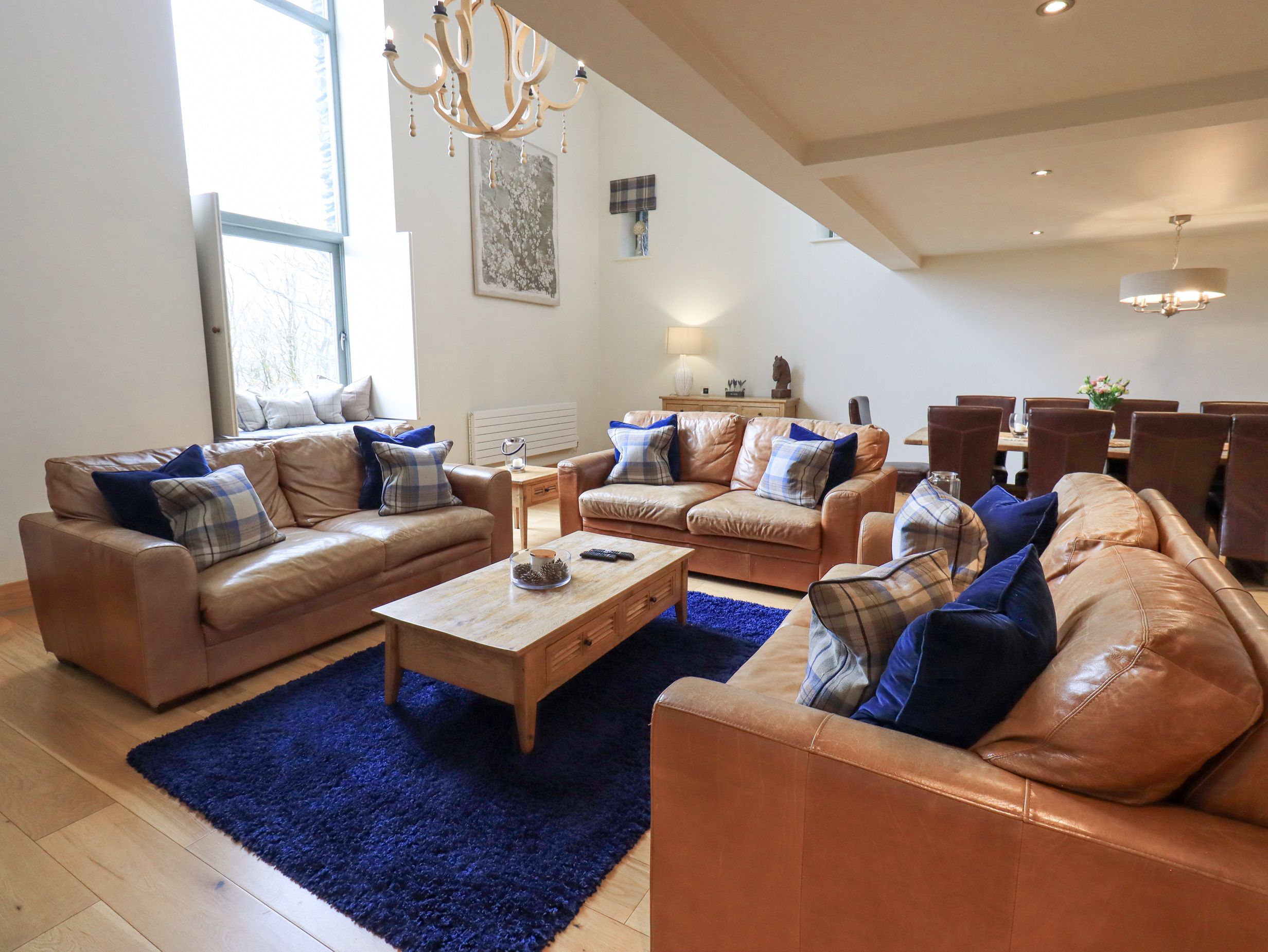 The spacious open plan living, dining and kitchen area which is situated on the first floor gives stunning views over the valley, and was perfect for us as a family as we were able to engage with each other and keep an eye on the young children, whatever we were doing. The kitchen was well equipt with everything you need for your stay, the dining table comfortably seats 10 and the living area has 3 large sofas around a smart t.v and wood burner.