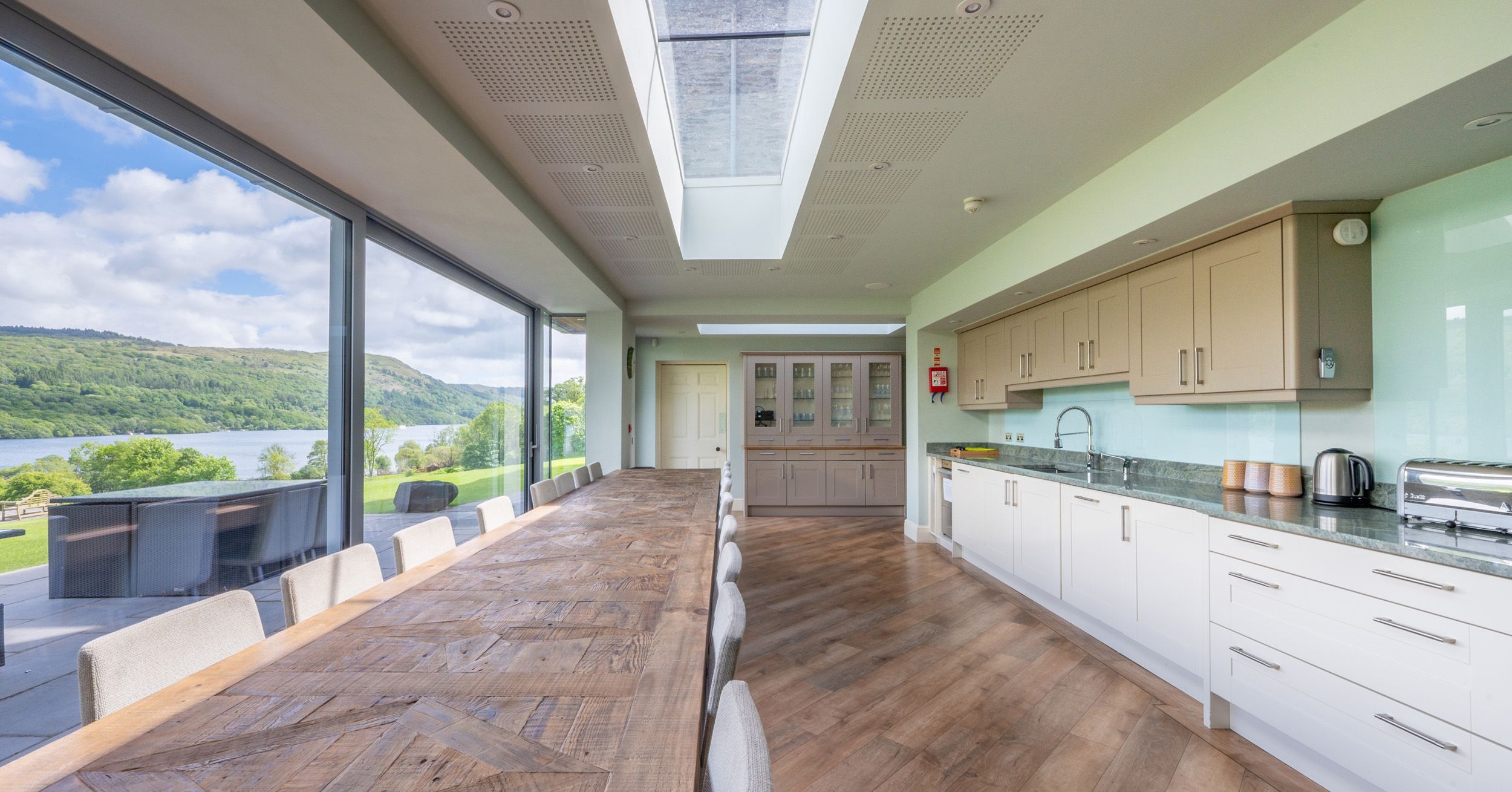 Silverholme is a luxurious manor house next to Lake Windermere on the wonderful Graythwaite Estate, five miles from Hawkshead in the Lake District National Park. This wonderful property sleeps eighteen people all with en-suites, hosting a ground-floor king-size and twin, a super-king-size and two twins on the first floor, and two king-sizes and a twin on the second floor, as well as a double in an external building, which also has an open-plan living area with kitchen, dining area and sitting area. The manor house has a kitchen with breakfast table, a dining room, a drawing room with woodburner, a library, a cinema room and two cloakrooms. Outside there's ample off-road parking, a front lawned garden with patio, furniture and barbecue and access to Graythwaite estate 20 minutes' walk away with leisure facilities and a trout fishing lake. A wonderful property for a family celebration.