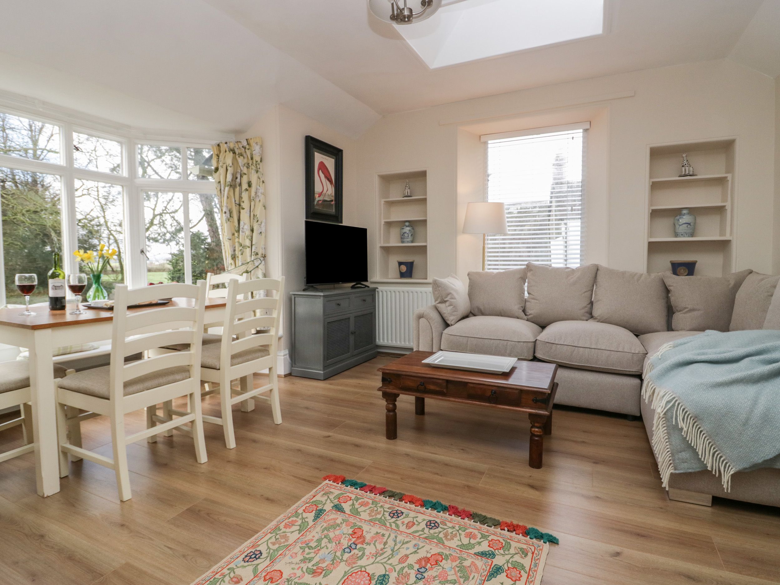 Amenities Oil central heating. Electric oven and hob, microwave, fridge, freezer, washer/dryer, dishwasher. Smart TV, WiFi, a selection of books and games. Fuel and power inc. in rent. Bed linen and towels inc. in rent. Highchair and travel cot available. Shared private driveway for 2 cars. Wrap-around garden with lawn, gravel, and furniture. Two well-behaved dogs welcome. Sorry, no smoking. Shop 1.3 miles, pub 1.1 miles. Note: There are steps up to the property, please take care. Note: The garden is not enclosed, dogs must be supervised at all times