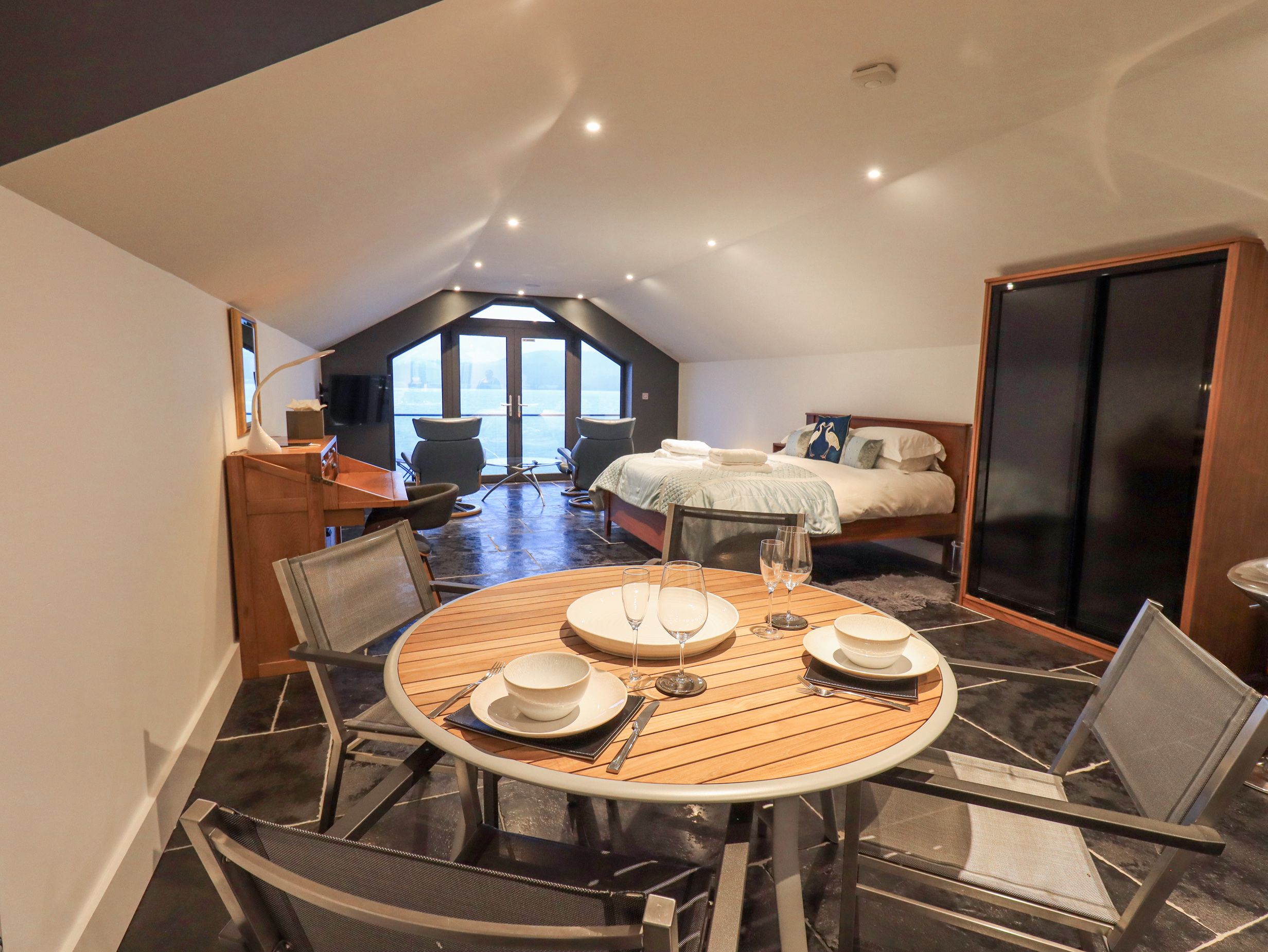 One word- WOW! We returned last week from the most wonderful stay at the Boathouse, we only live around 45 minutes away but we felt as though were in another world. The boathouse was such a beautiful place, with views you could only dream of, the sunsets were absolutely stunning especially when enjoyed on the balcony overlooking the lake and of course with a bottle of Prosecco! The sun set right in front of us each night and the views were just something else. In addition, the jetty out to the lake was the perfect addition and the ducks enjoyed this too as they visited us each day. We thoroughly enjoyed taking the kayak (life jackets included) out many times through the electric controller door and of course the jacuzzi which we relaxed in twice a day nearly every day! The boathouse itself featured some fantastic, high quality amenities- the Dyson fan and speaker system were a favourite with my partner as well as the brilliantly equipped kitchen. The boathouse was very difficult to fault although the spiral staircase could be improved to allow less able people to be able to access the upstairs. In addition, the driveway is extremely tight and clearer directions on how to access the drive to the boathouse would be recommend. Overall, our stay was just perfect and we loved every minute- a picture perfect, romantic place- we can’t wait to return one day. 7 nights just wasn’t long enough. Thank you so much for a most amazing stay!