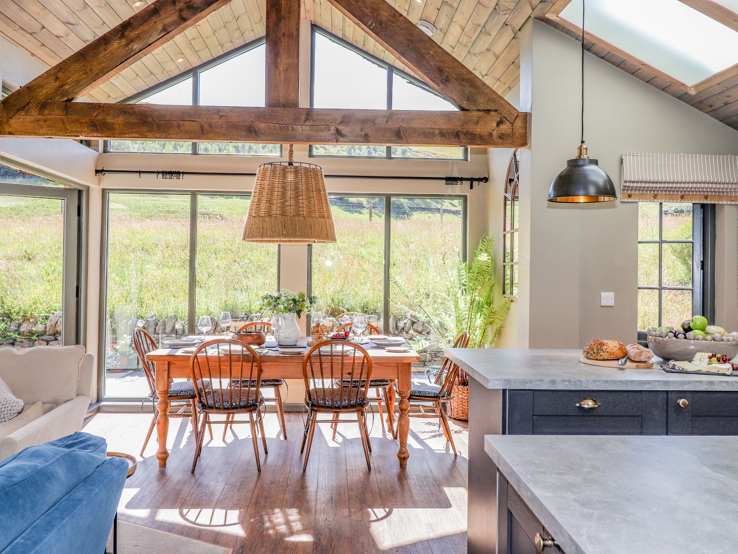 Amenities Ground source heat pumps with underfloor heating and woodburning stove. Electric range cooker with 2 ovens and 4 hobs, microwave, fridge/freezer, washer/dryer, dishwasher. Smart TV, WiFi. Fuel, power and starter pack for woodburning stove inc. in rent. Bed linen and towels inc. in rent. Off-road parking for 3 cars. Enclosed back garden with decking and barbecue. One well-behaved dog welcome, please note, no dogs are permitted on site during lambing season, between the months of February - March. Sorry, no smoking. Shop 2.7 miles, pub 4 miles. Note: There are steps up to the open-plan living space, please take care. Note: Children under the age of five years old will not be accepted at the property, please consider this when booking. Monday and Friday arrivals only