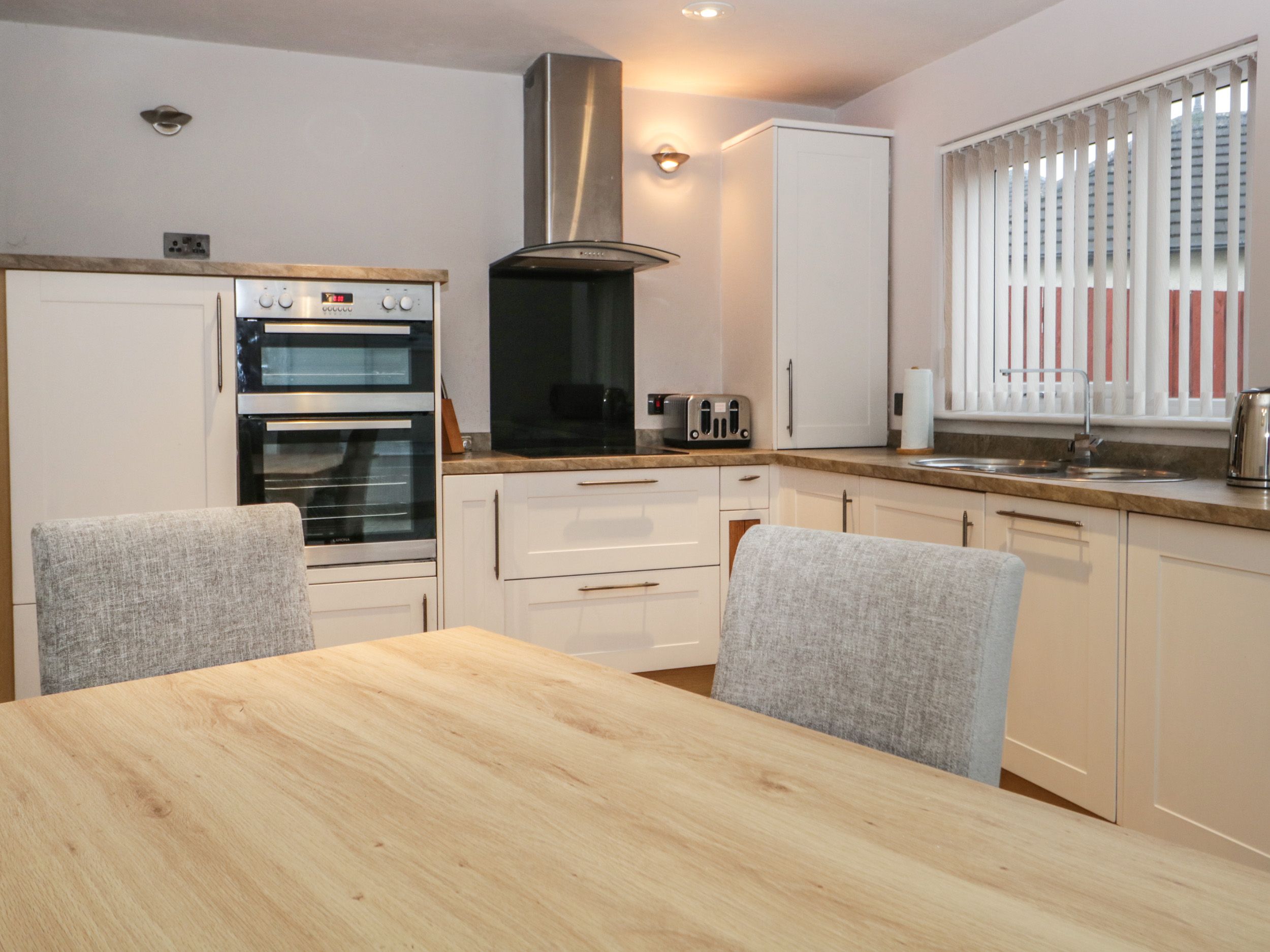 Holiday home The living areas in the property consist of an open-plan living area with a kitchen with an electric oven and halogen hob, microwave, fridge, freezer, washing machine, dishwasher, dining seating for four people, a sitting room with TV, and an additional sitting room with Smart TV and gas fire. The bedrooms consist of a super-king-size and a double with en-suite bathroom, along with a shower room. Outside there is a garden with patio, gravel and furniture, and off-road parking for one car at the rear of the property. Within 0.3 miles, you will find a shop, and within 0.1 miles, a pub, and please note that this is a non-smoking property. Fuel, power, bed linen and towels are all included in the price. One well-behaved pet is welcome at the property. Please be aware that there are steps leading up to the property entrance. Viewpoint is a fabulous dwelling for exploring the Lakes.