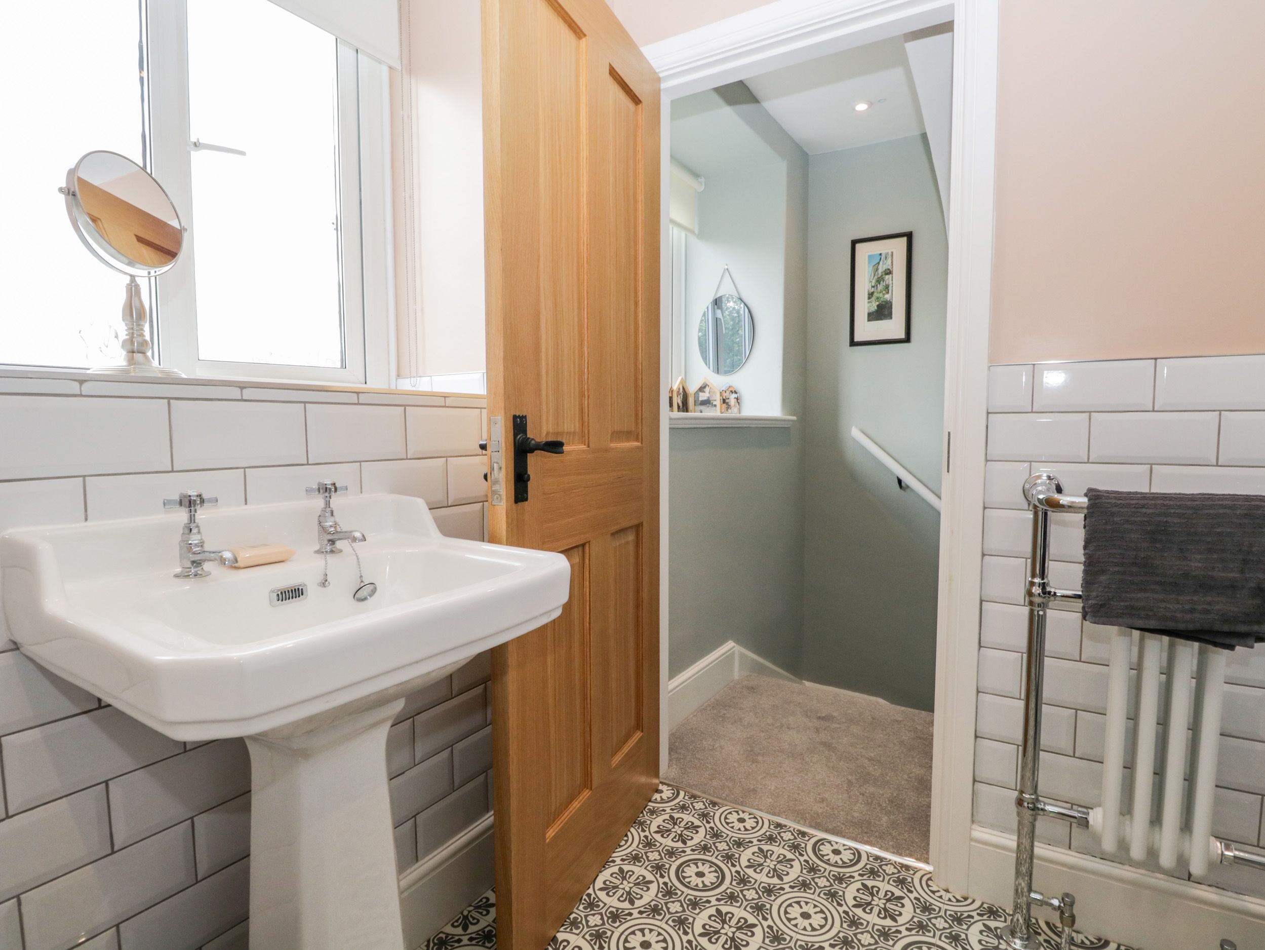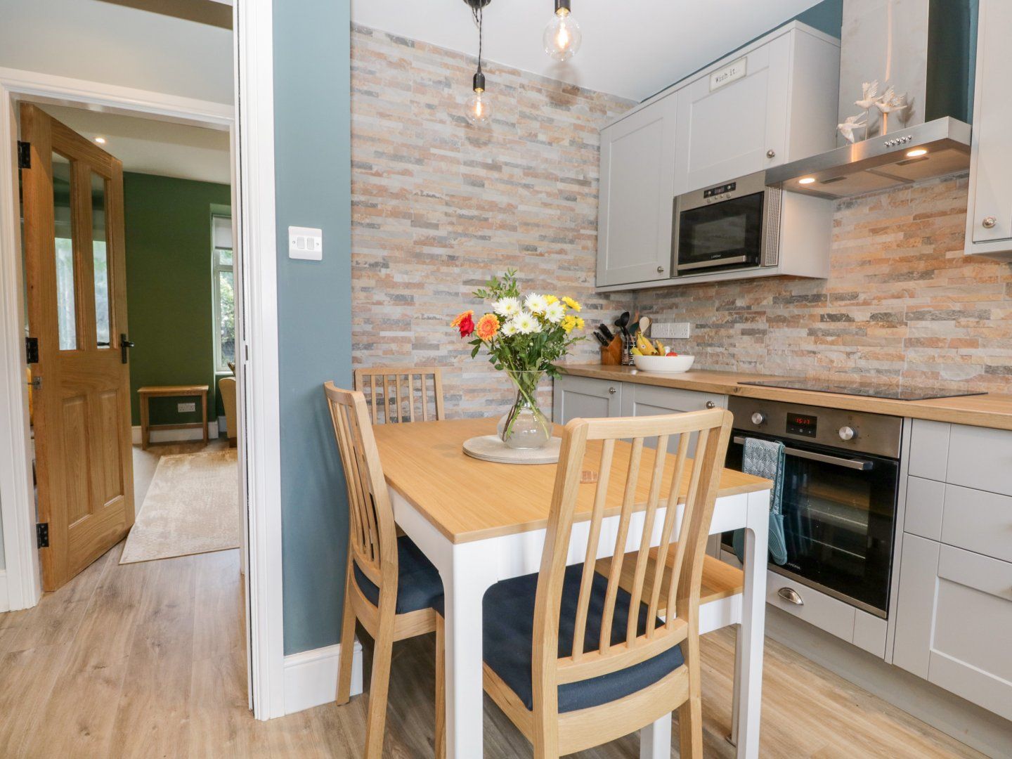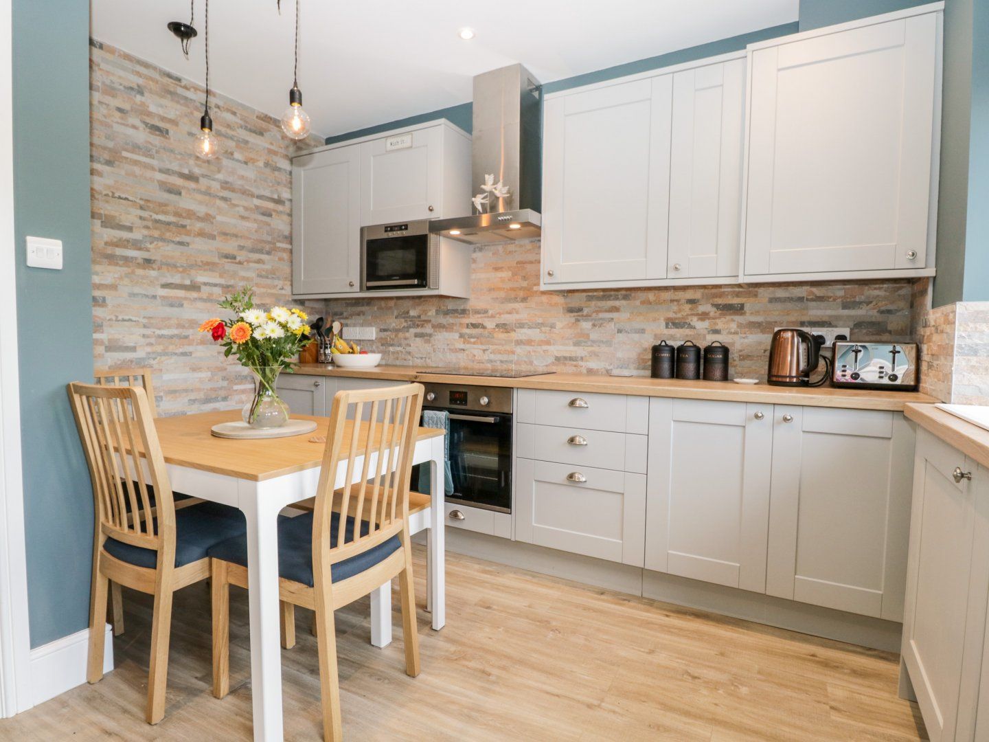 Accomodation Details Over three floors. Three bedrooms: 1 x king-size bedroom with en-suite walk-in shower, basin and WC, 1 x second-floor twin, 1 x second-floor single. Bathroom with shower over bath, basin and WC. Kitchen/diner. Electric oven, halogen hob, microwave, fridge, freezer, dishwasher, washer dryer, Sitting room with gas fire.