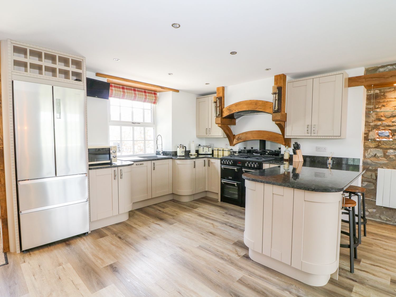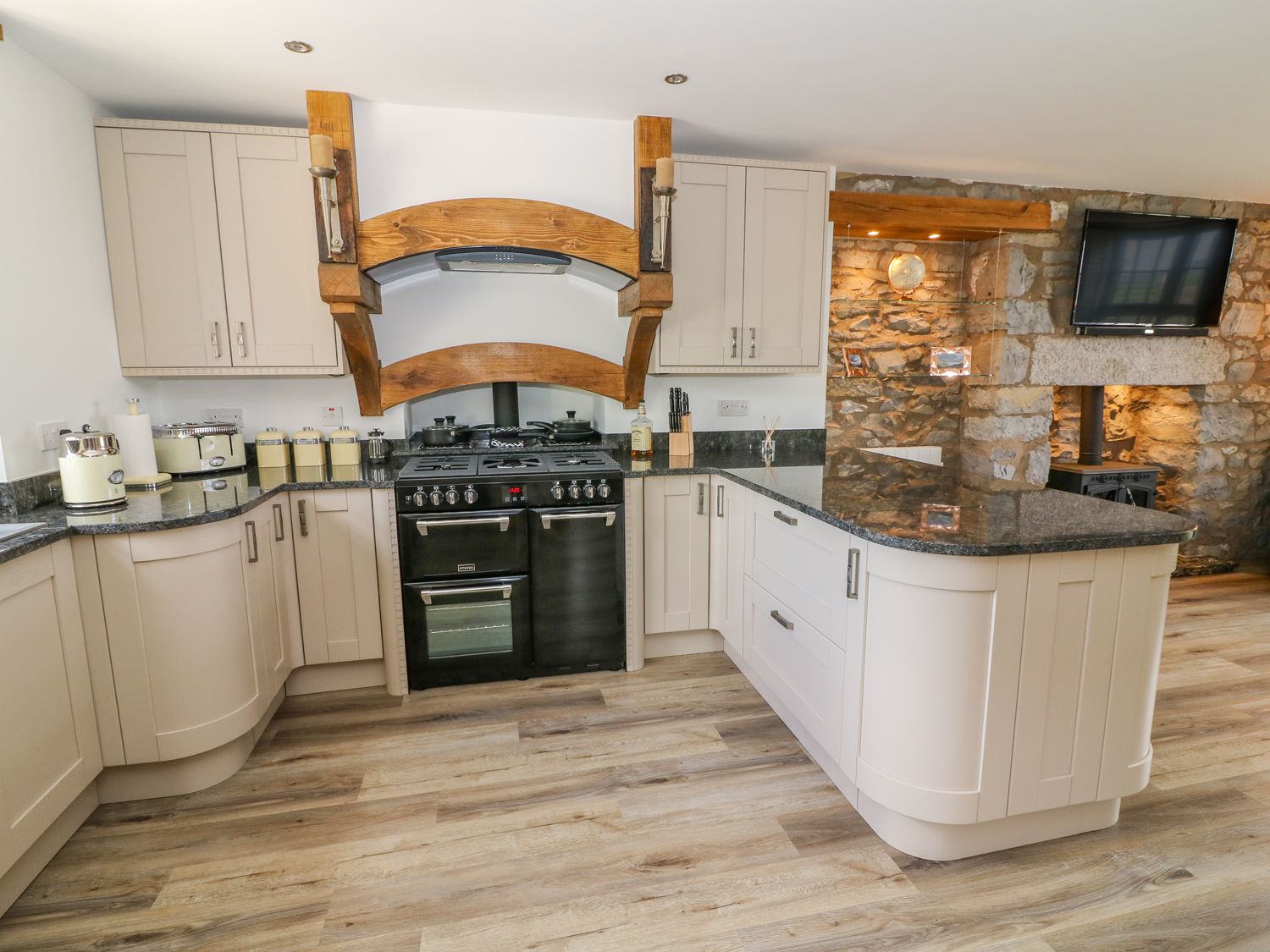 Holiday home Winster cottage is a detached cottage situated in the town of Grange-over-Sands, Cumbria. The property hosts three bedrooms, one king-size bedroom, one queen-size bedroom with loft-style stairs leading to a recreational mezzanine room, and one single bedroom. Also inside the property is an open-plan kitchen/dining/sitting room with a decorative woodburner stove (do not use), one bathroom with a L-shaped bath with shower over, WC, hand basin and heated towel rail, and one cloakroom with a WC, hand basin, and heated towel rail. The property has off road parking for one park with additional roadside parking. Also included is a large private garden and patio area with a garage and riverside/limestone escarpment views. Make Winster Cottage your next getaway for a refreshing break in this remarkable region of Cumbria. Please note: property sleeps a maximum of 5 people including any infants.