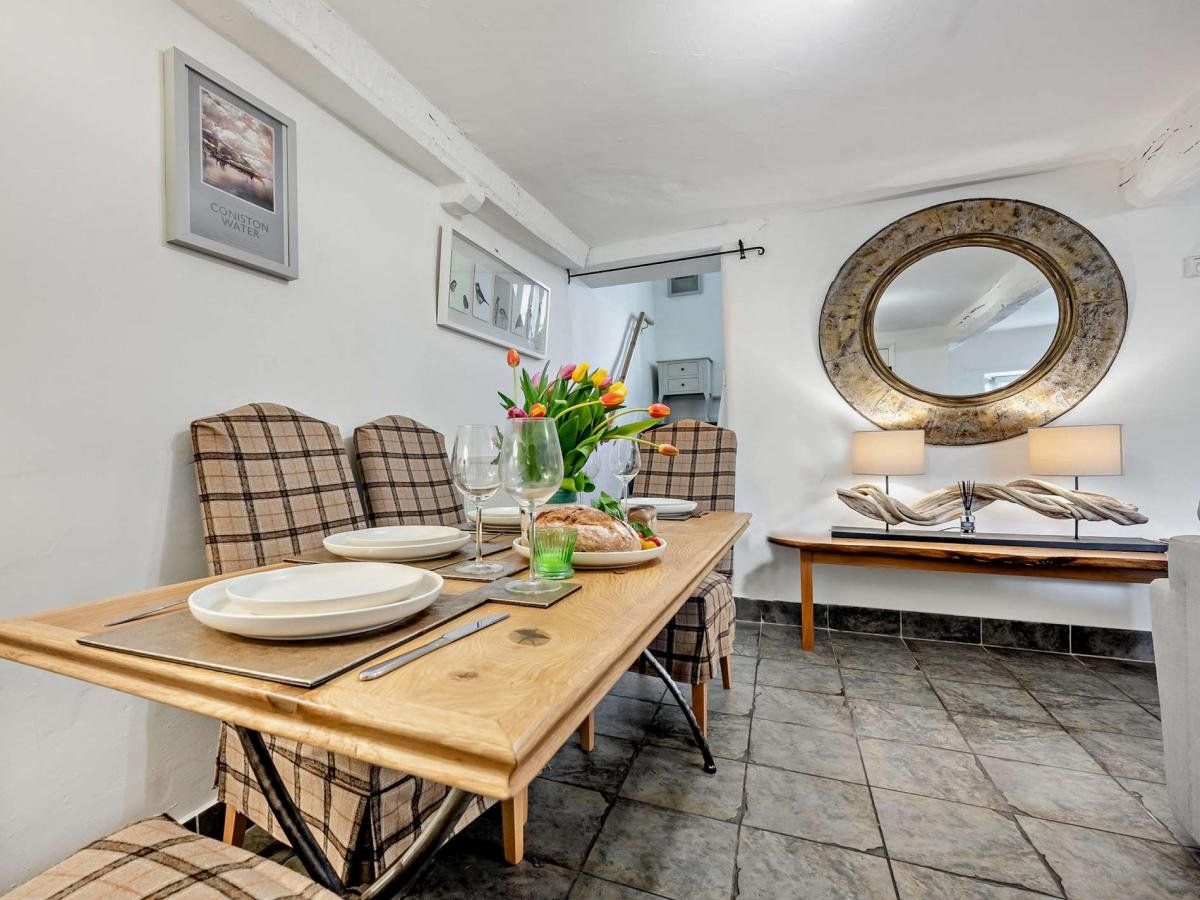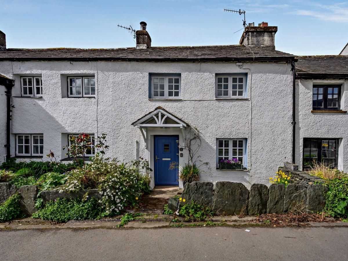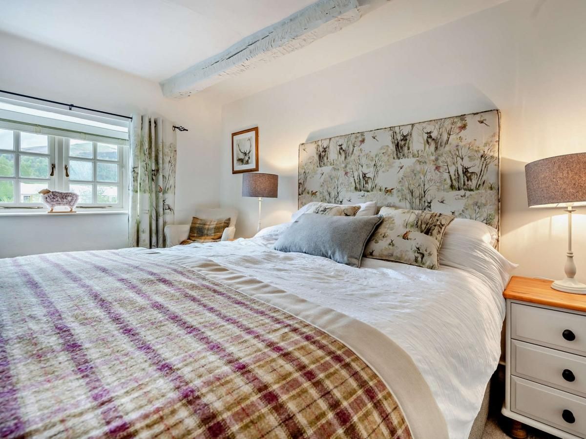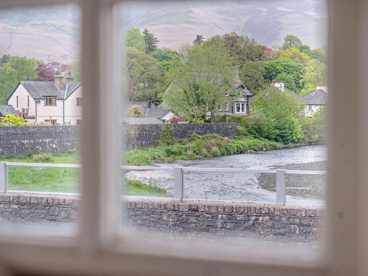 A traditional, whitewashed cottage in the charming market town of Keswick has lovely views of the fells and overlooks the River Greta.