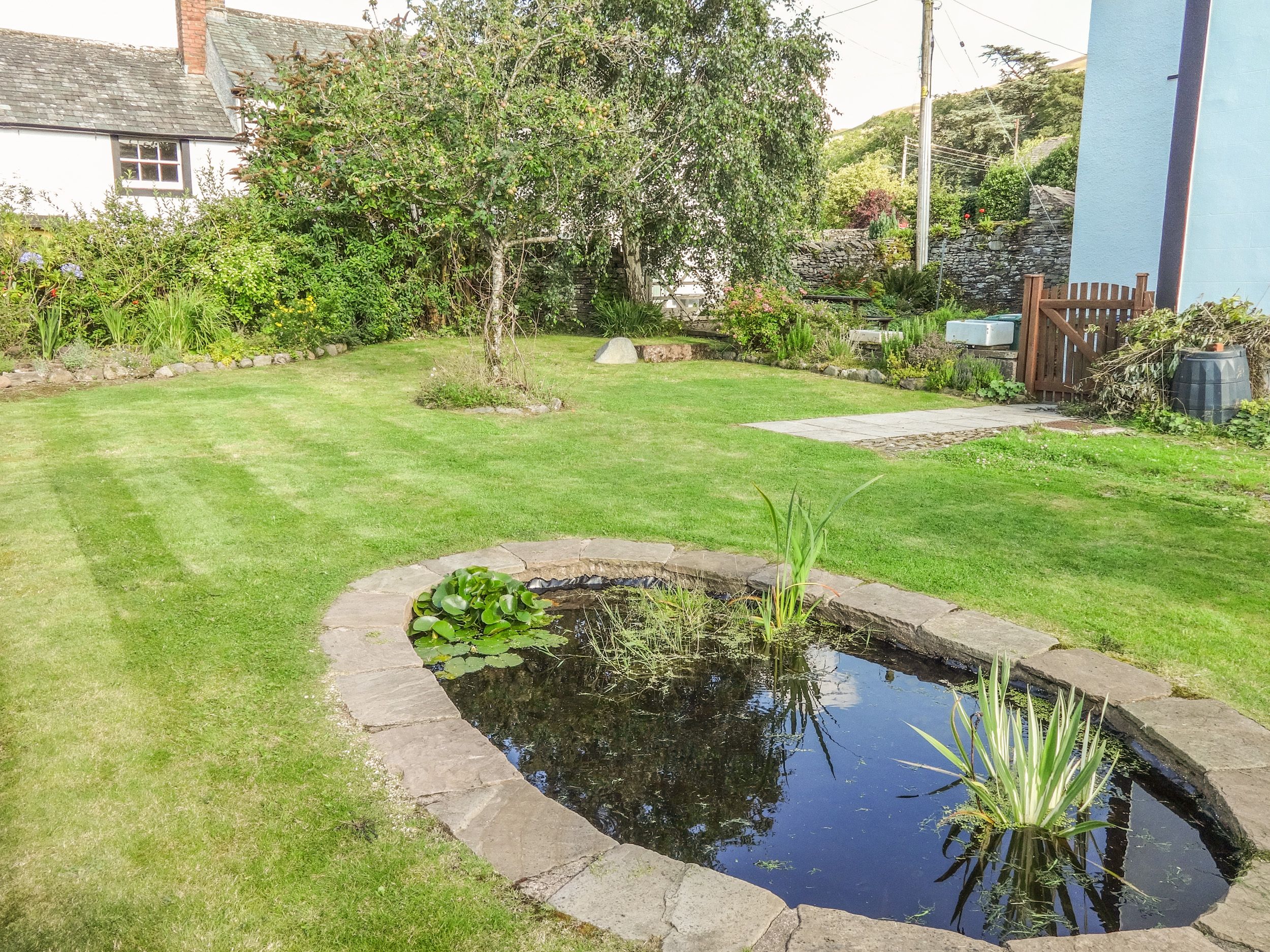 Electric oven and hob, microwave, fridge/freezer, washer/dryer and dishwasher. Electric central heating with wood burner and open fire. 2 x TV with Freeview and DVD. WiFi. Selection of books, games and DVDs. Fuel, power and starter pack for fire inc. in rent. Bed linen incl in rent. Towels are provided. Travel Cot and highchair. Private parking for 2 cars. Enclosed patio seating area to rear with pond and outdoor furniture. Sorry, no smoking. Shop under 1miles and pub 8 mins walk. Note: There is a small pond to the side of the property, therefore children will require supervision.
